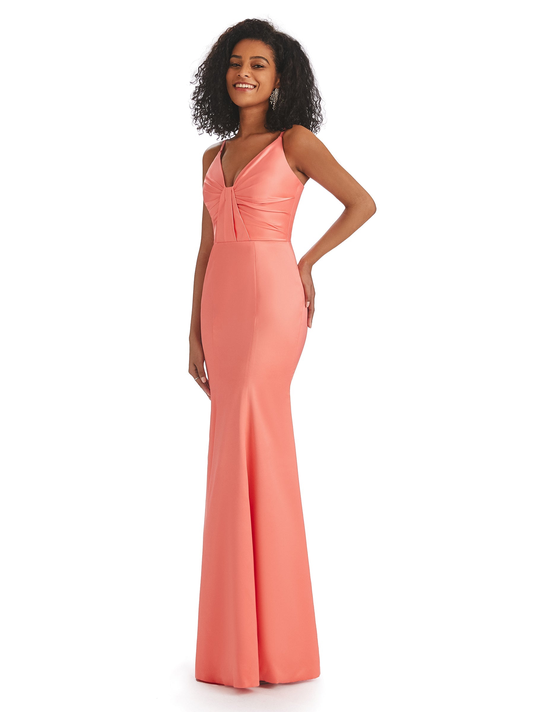 Sexy Soft Satin Spaghetti Straps V Neck Long Mermaid Prom Dresses Online
