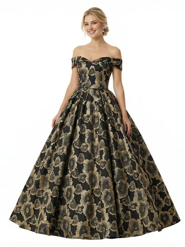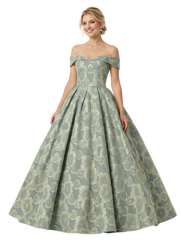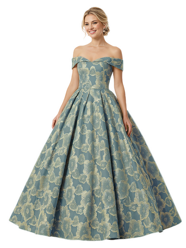 ChicSew Modern Floral Jacquard Off Shoulder Floor-Length A-Line Long Formal Evening Dresses