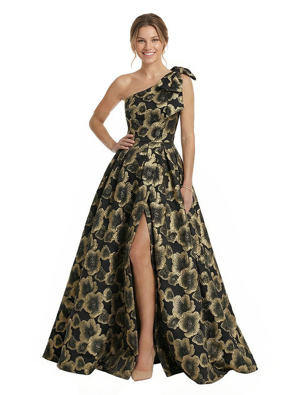 ChicSew Modern Floral Jacquard One Shoulder Floor-Length A-Line Long Formal Evening Dresses