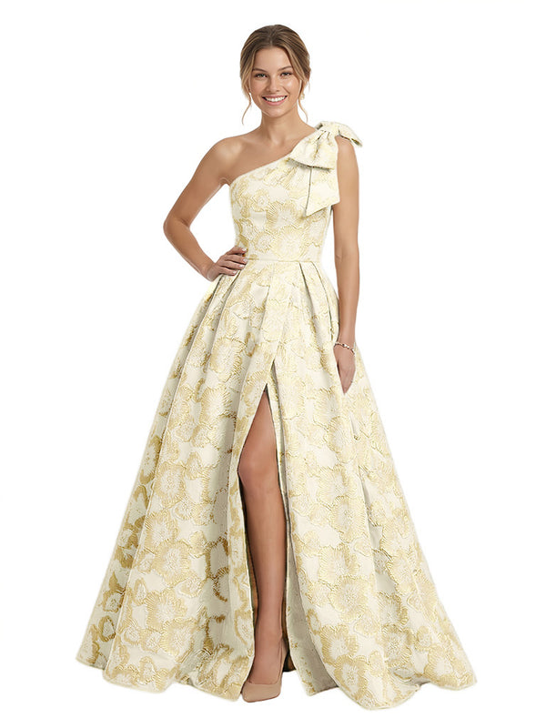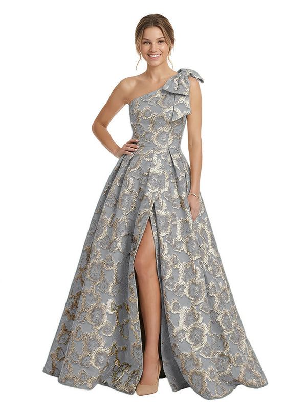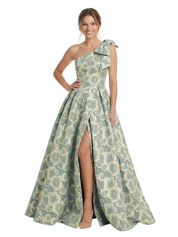 ChicSew Modern Floral Jacquard One Shoulder Floor-Length A-Line Long Formal Evening Dresses $229.99