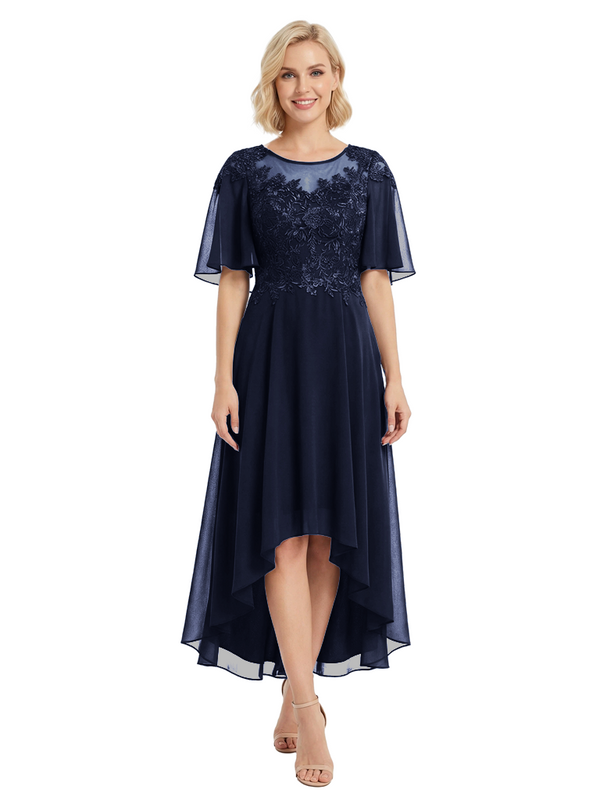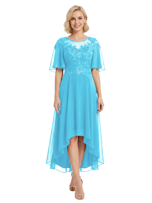 Chicsew Modern High-Low Lace Applique Flutter Sleeves Mother Of The Bride Dress- ChicSew – ChicSew