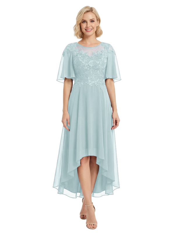 Chicsew Modern High-Low Lace Applique Flutter Sleeves Mother Of The Bride Dress
