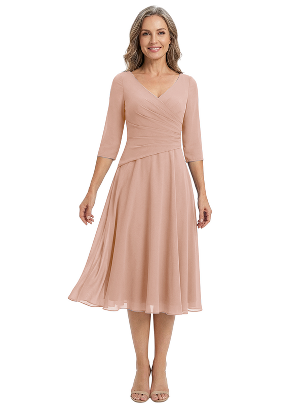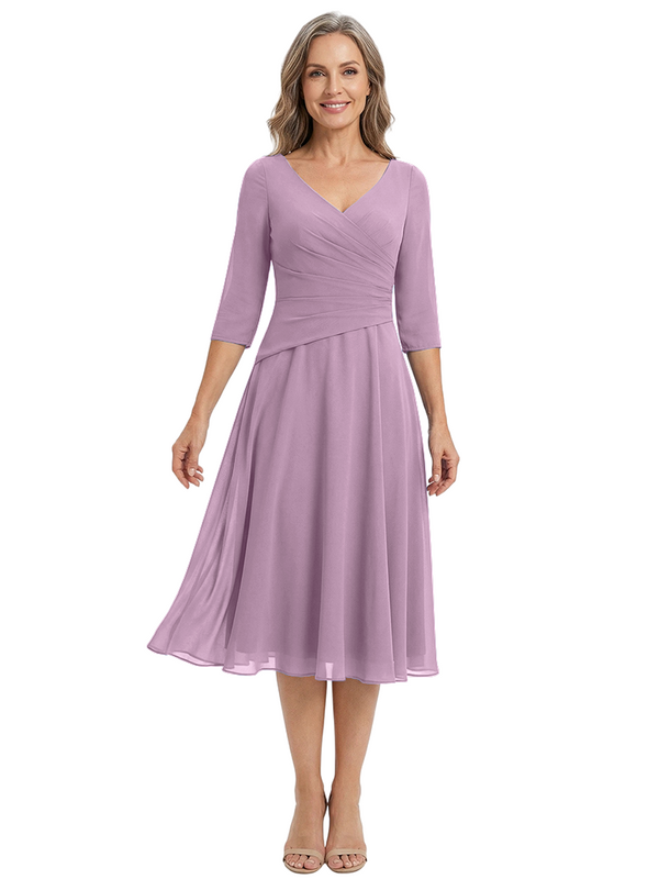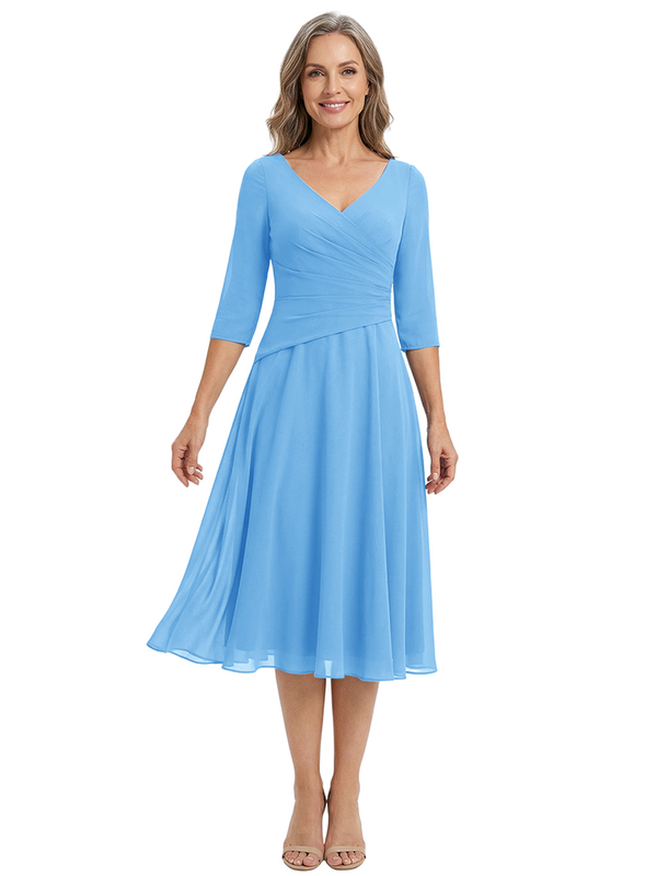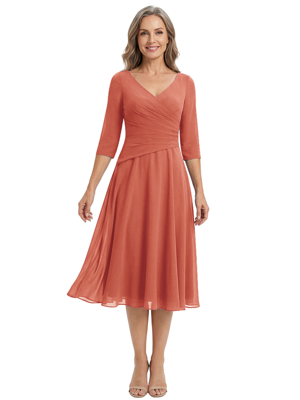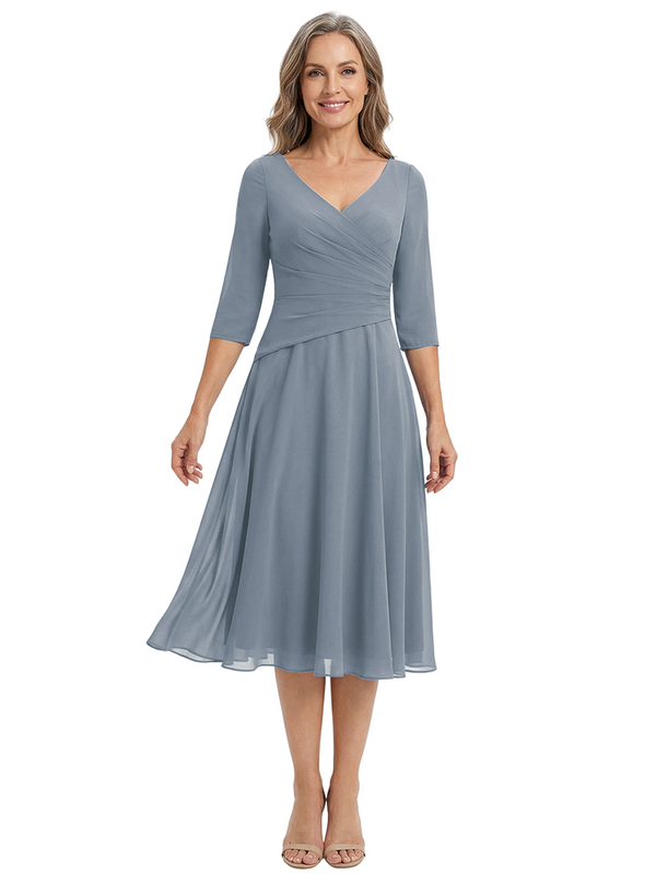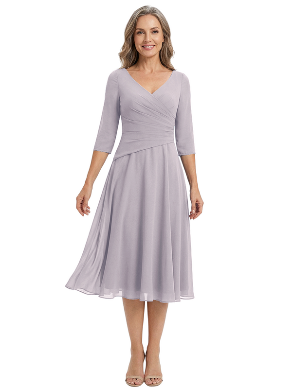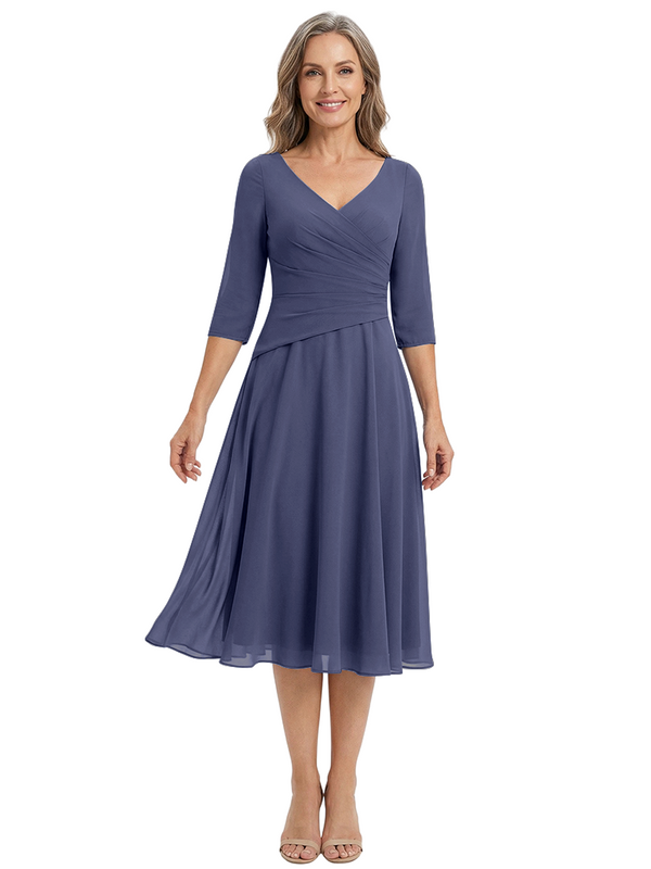 ChicSew Modern V-Neck Tea-Length Mother Of The Bride Dress Chiffon Fit Flare - ChicSew – ChicSew