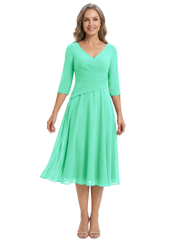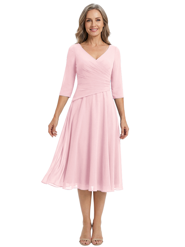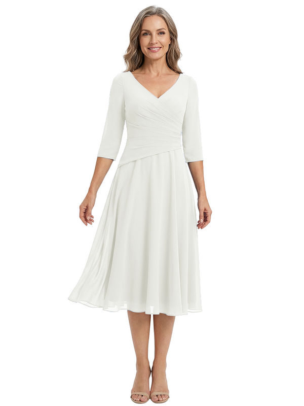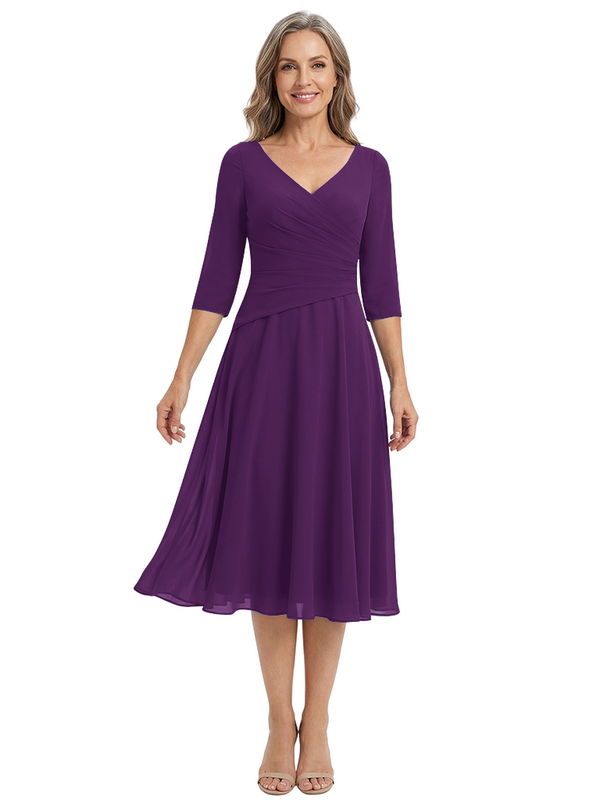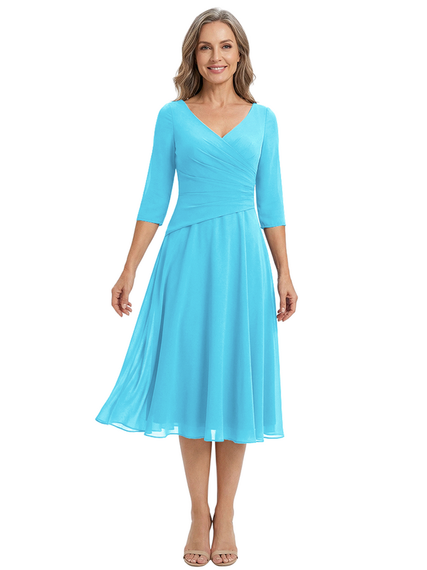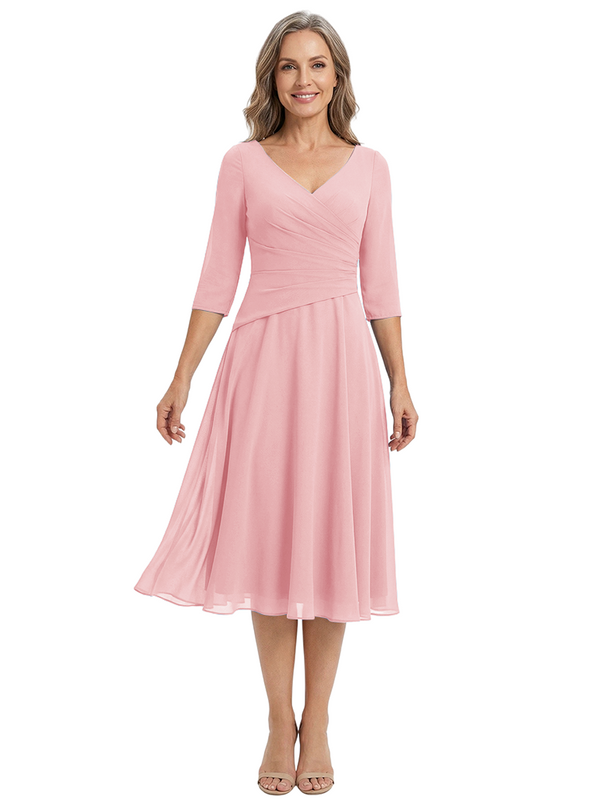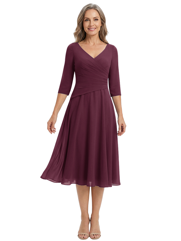 ChicSew Modern V-Neck Tea-Length Mother Of The Bride Dress Chiffon Fit Flare - ChicSew – ChicSew