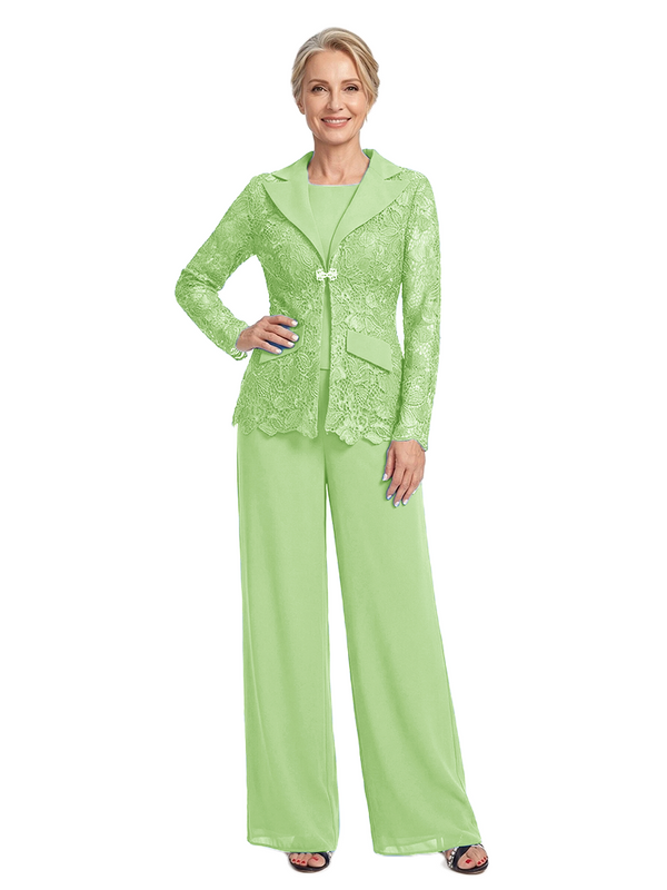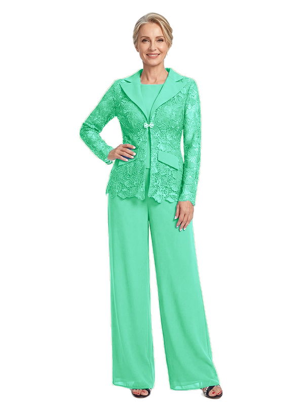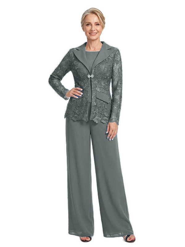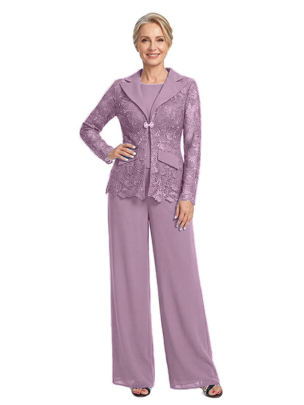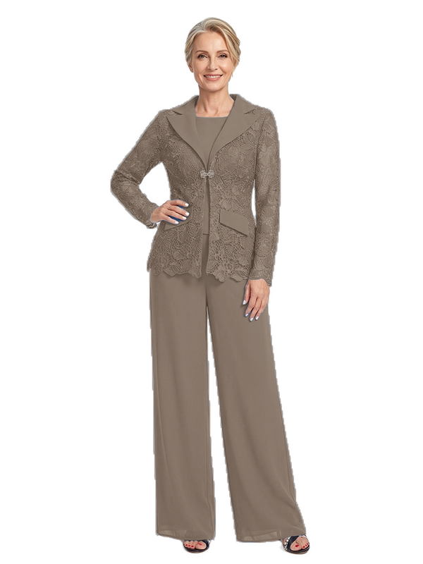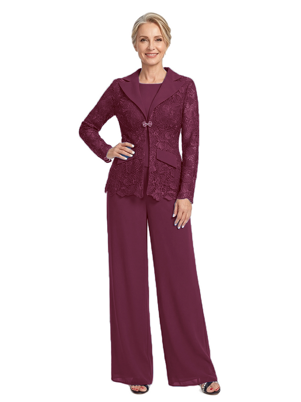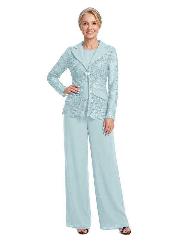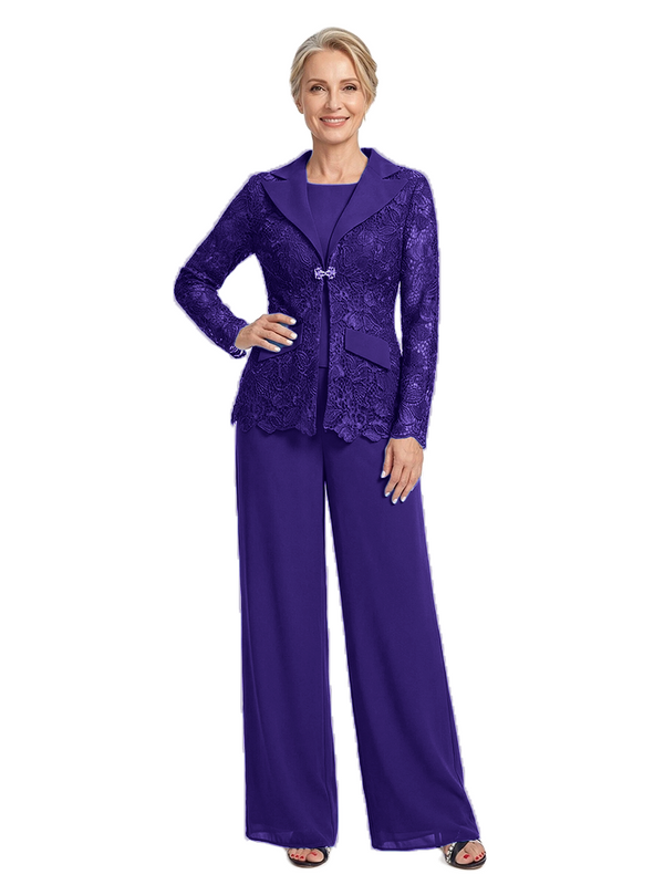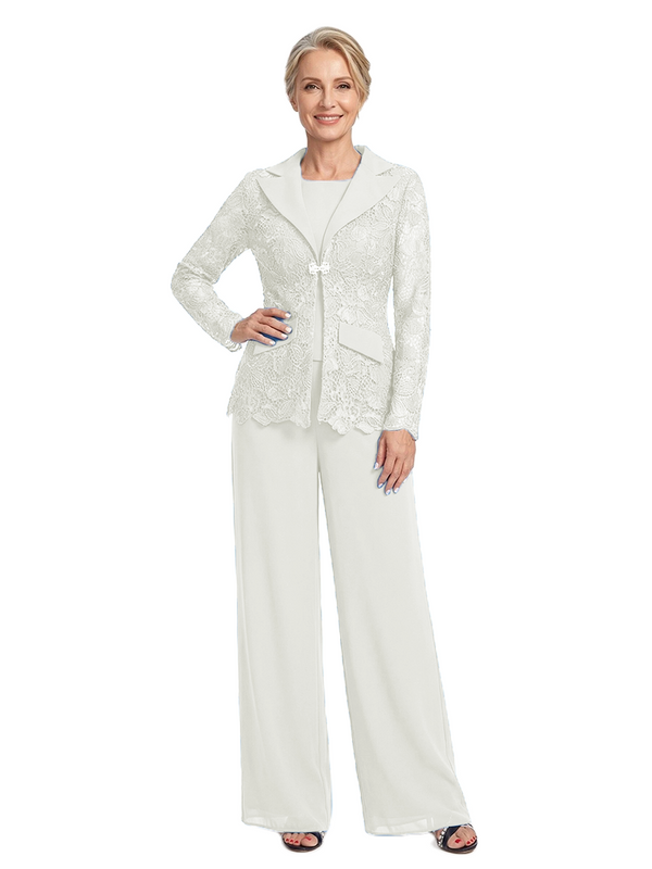 ChicSew Notched Lapel Lace Blazer Matching Wide Leg Pant Suit Formal Mother Of The Bride And Groom Outfits - ChicSew – ChicSew