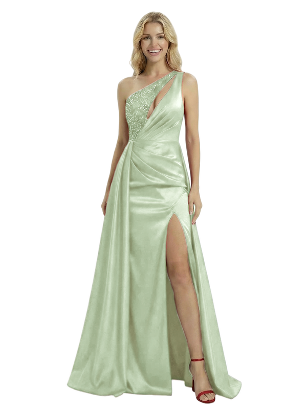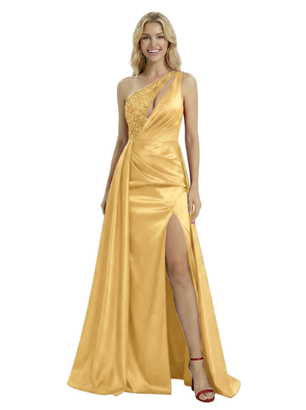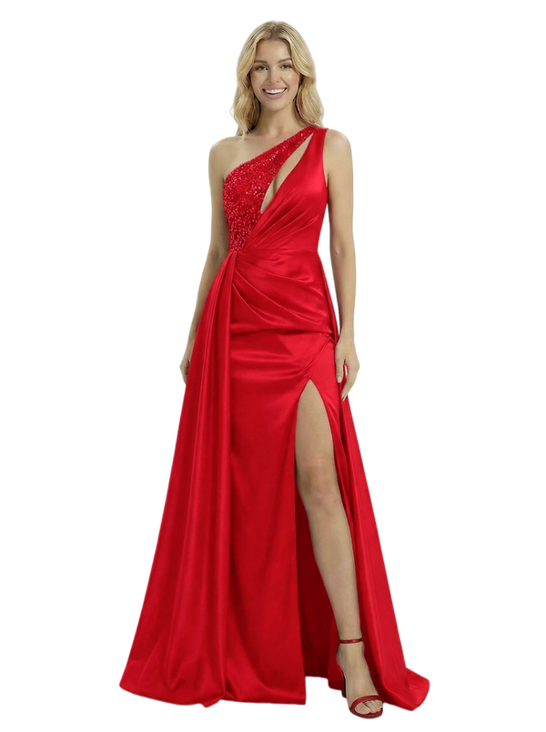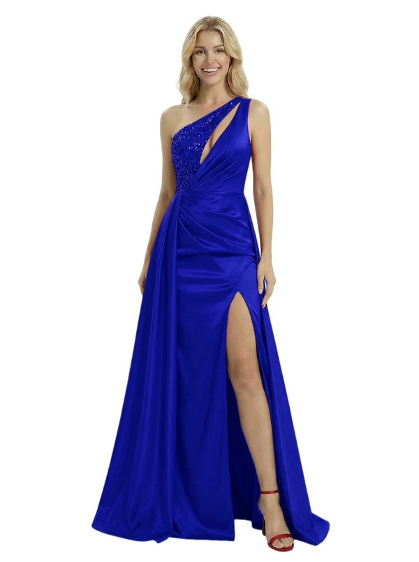 ChicSew One Shoulder Ruched Sequin Mermaid Satin Maxi Long Evening Gown With Side Slit - ChicSew – ChicSew