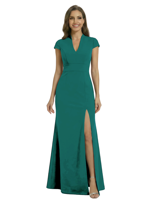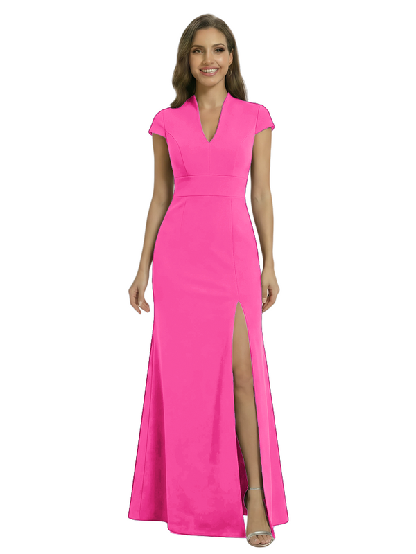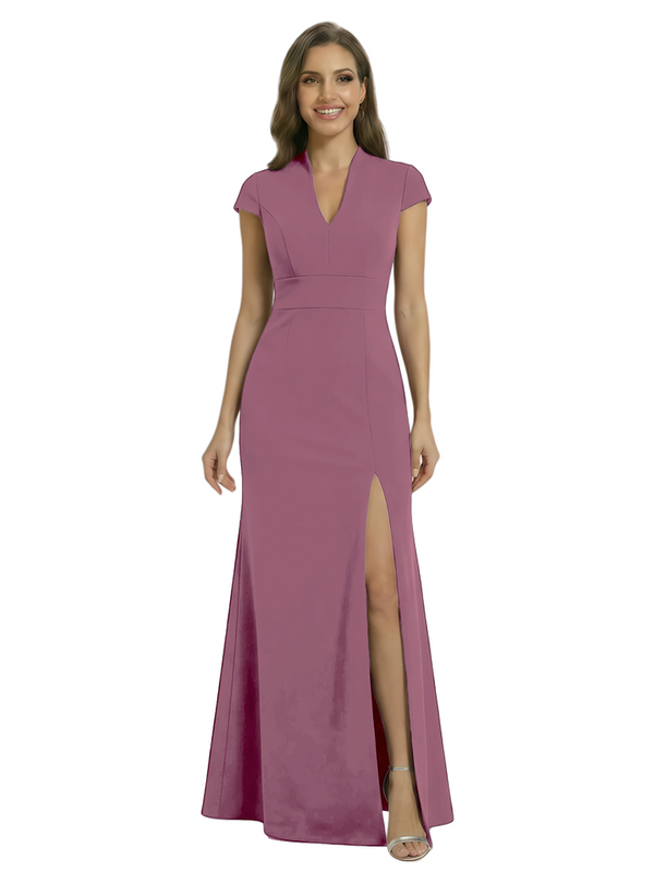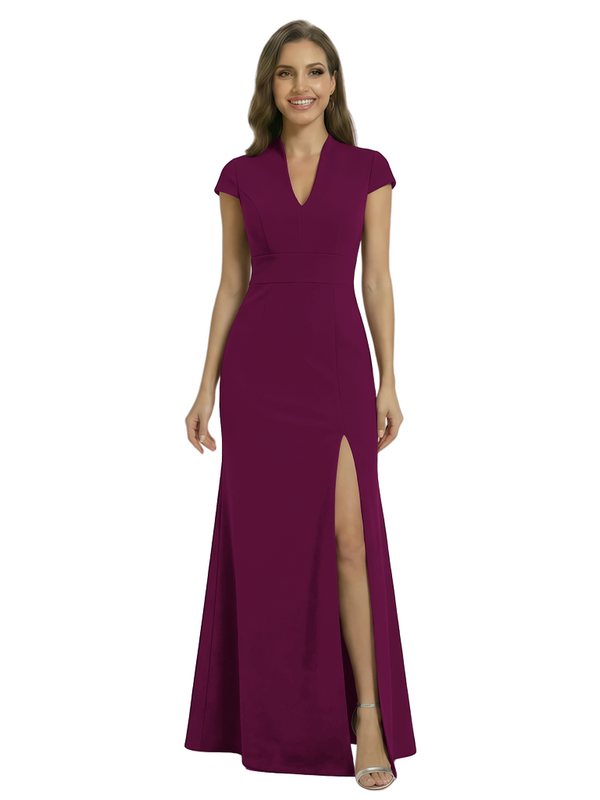Chicsew Pretty Crepe Cap Sleeves V-Neck Side Slit Mermaid Gown Formal Mother Of The Groom Dresses