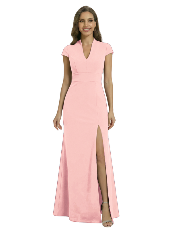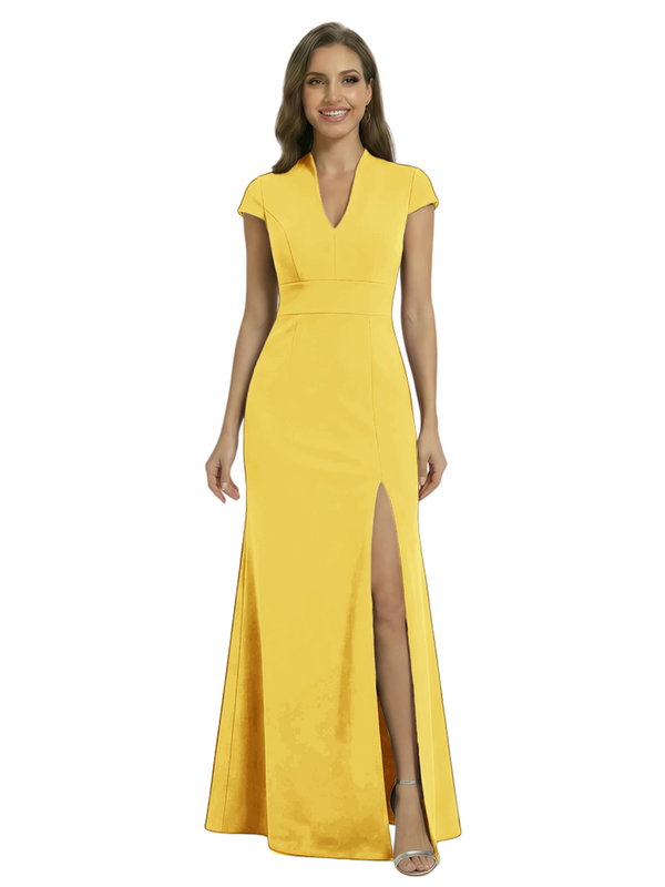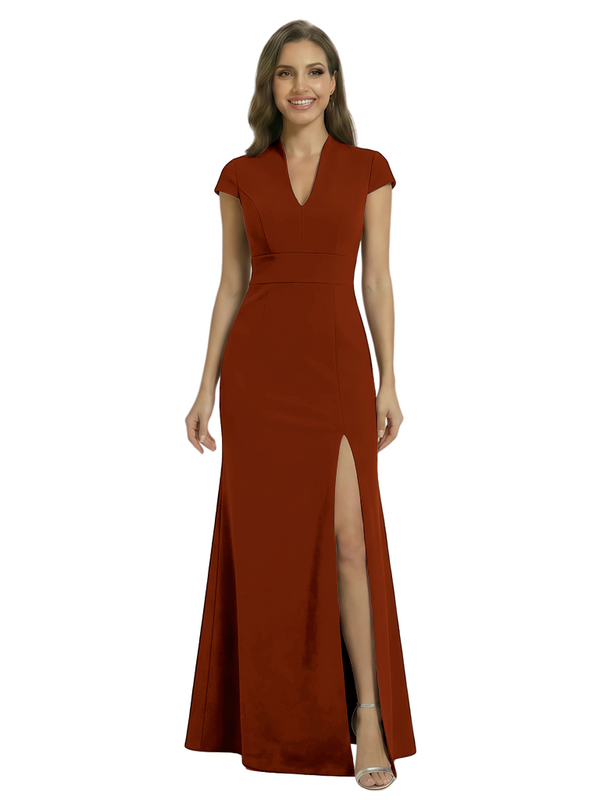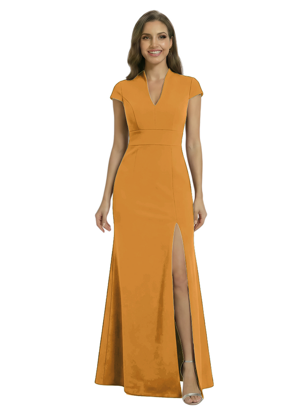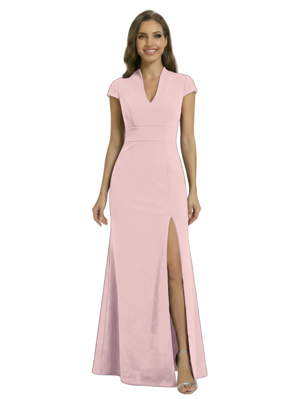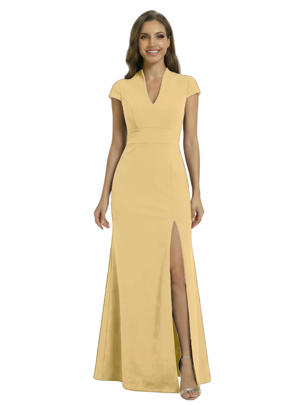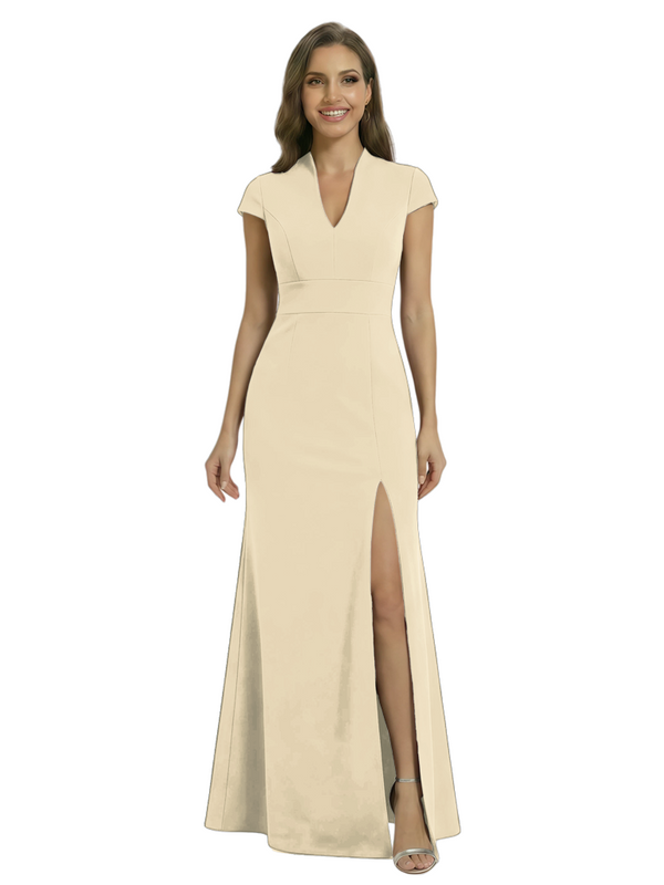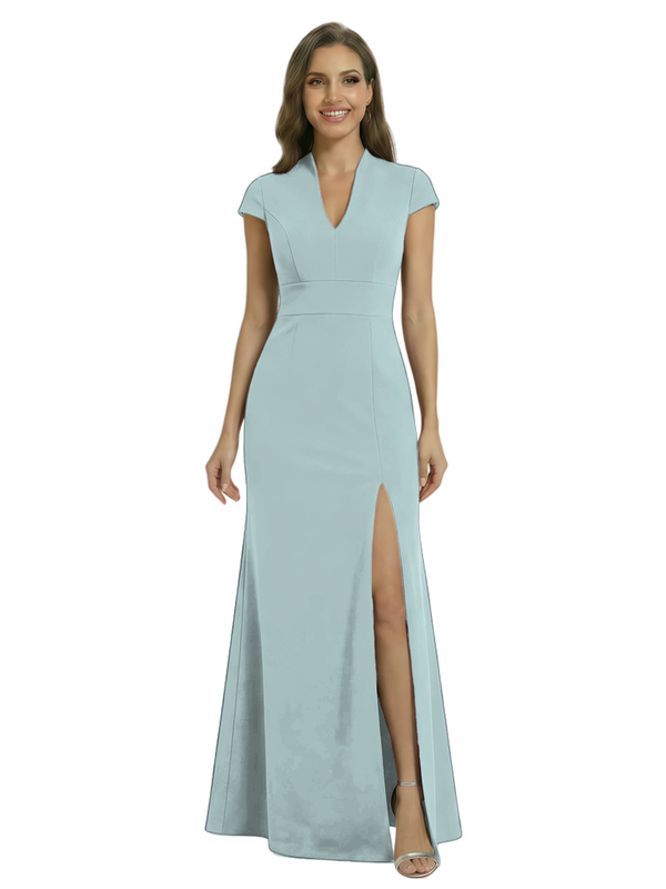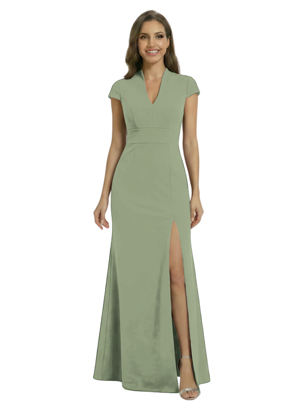 Chicsew Pretty Crepe Cap Sleeves V-Neck Side Slit Mermaid Gown Formal Mother Of The Groom Dresses - ChicSew – ChicSew