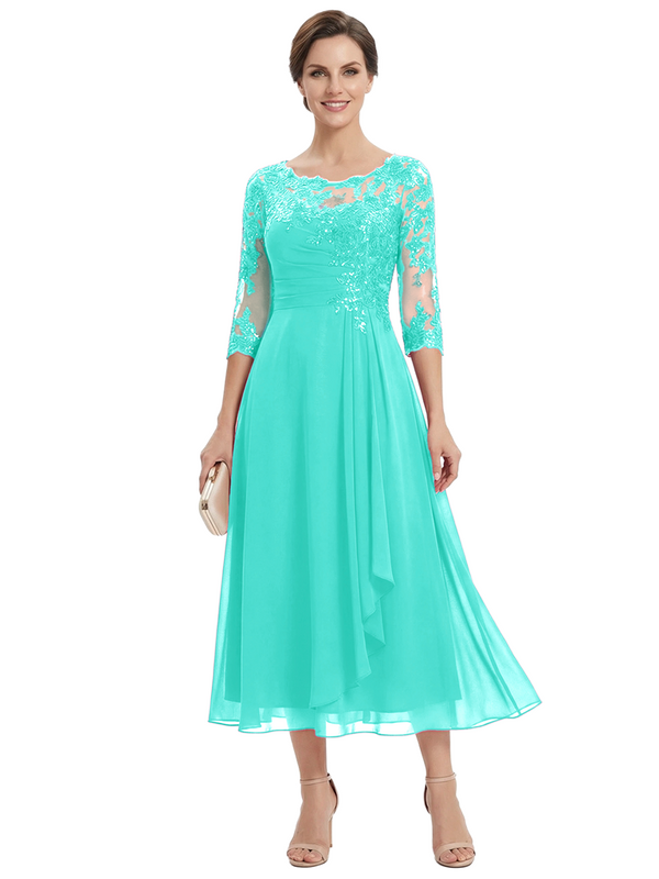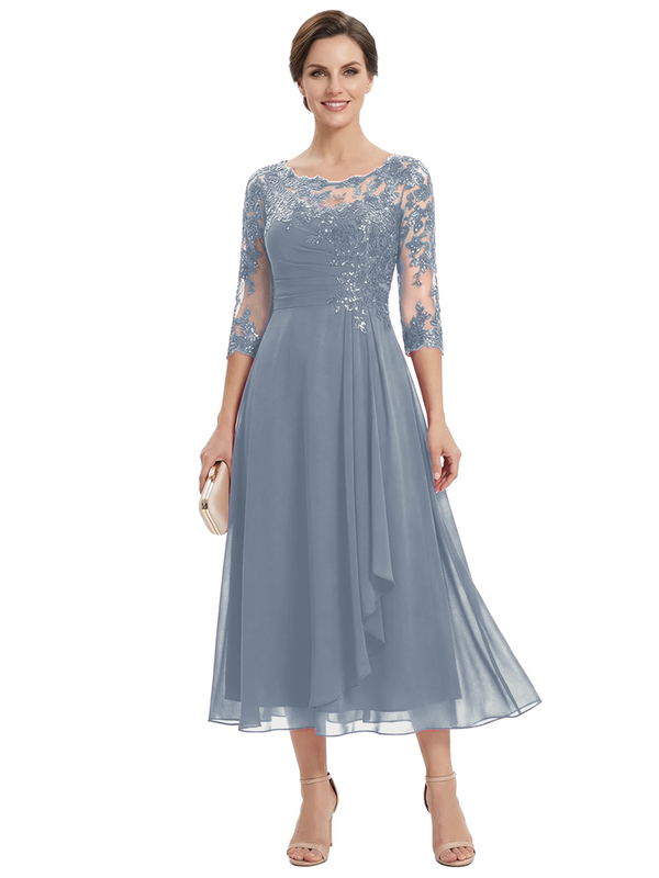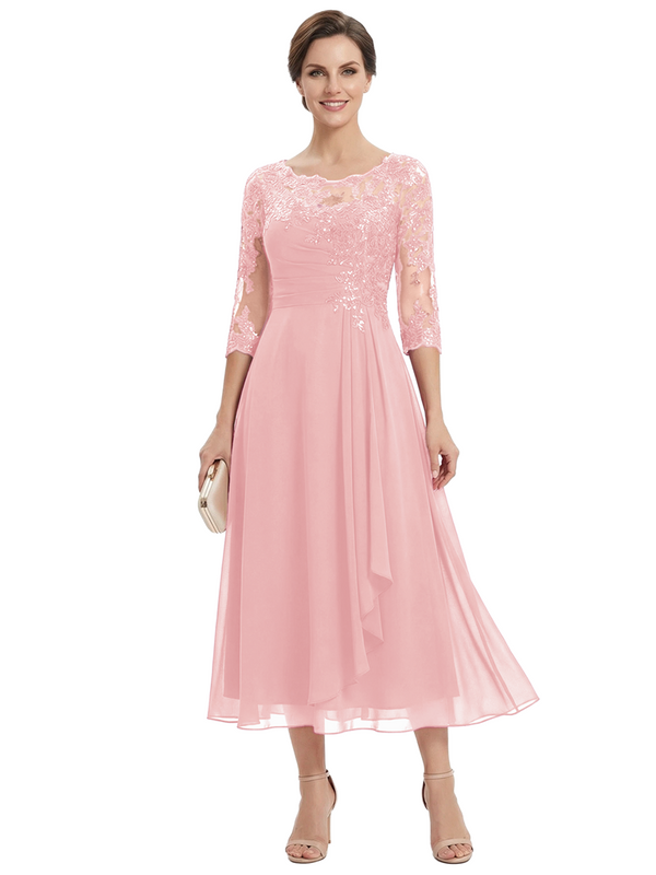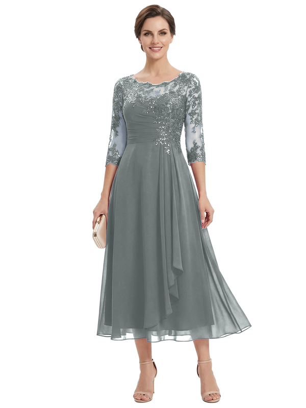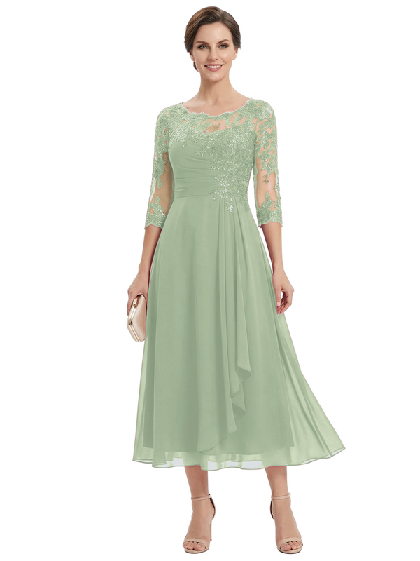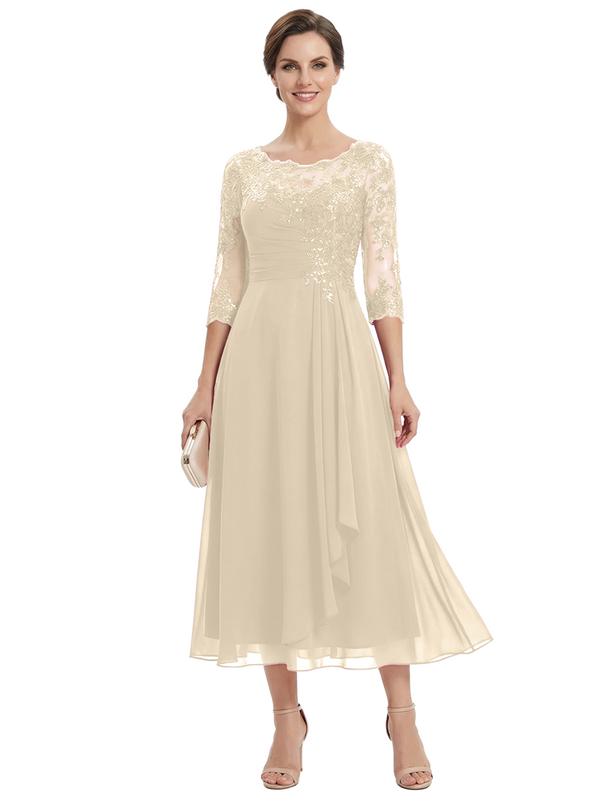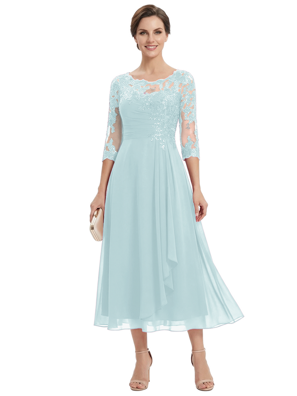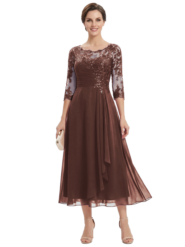 Chicsew Pretty Scoop 3/4 Sleeve Lace Sequin Mother of The Groom Dress Asymmetric Midi Chiffon Gown - ChicSew – ChicSew