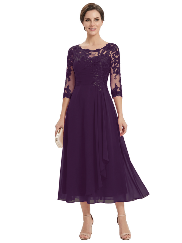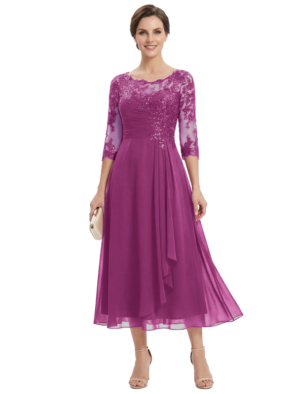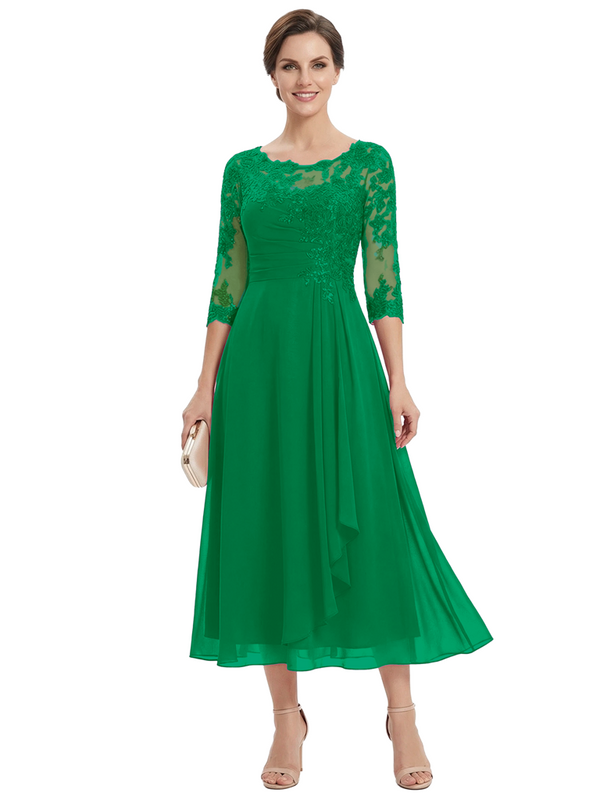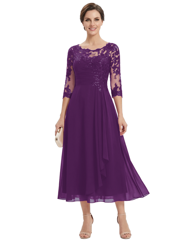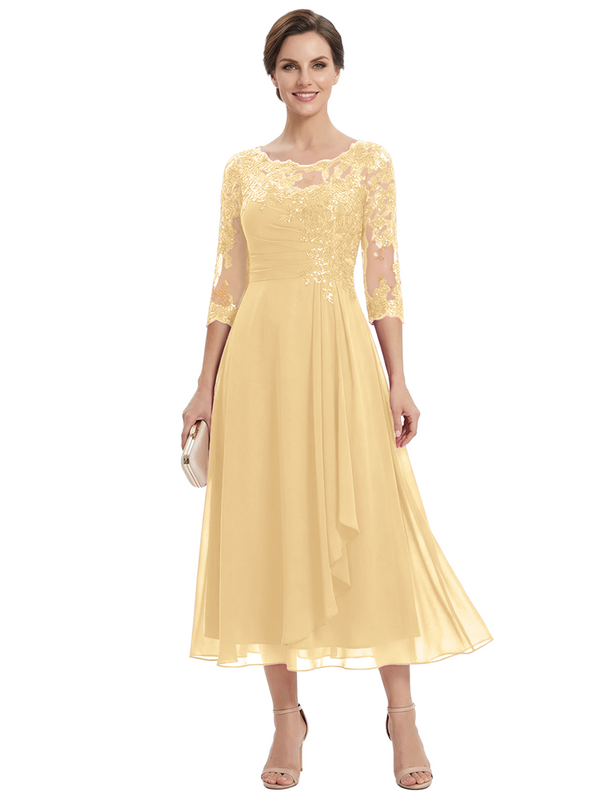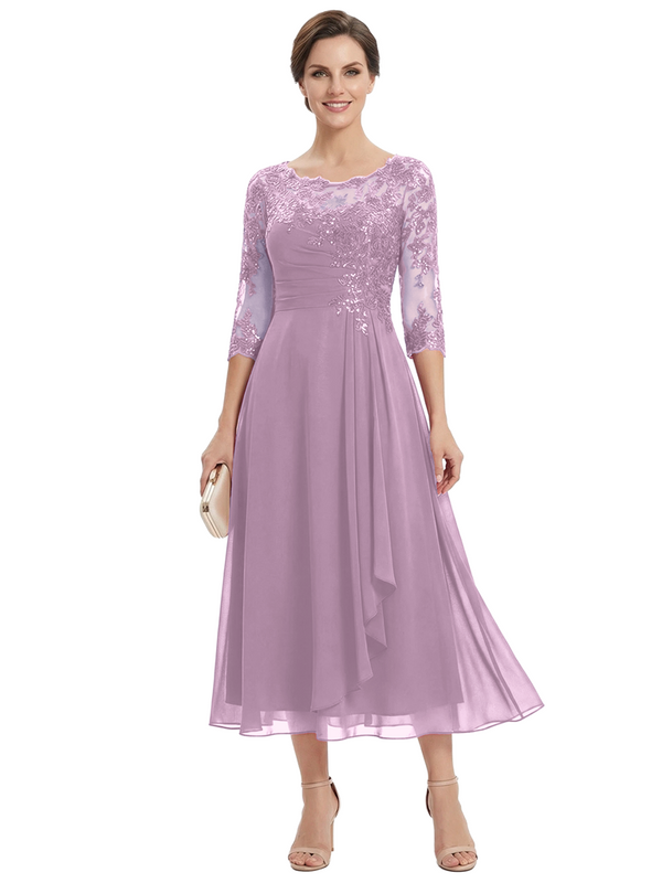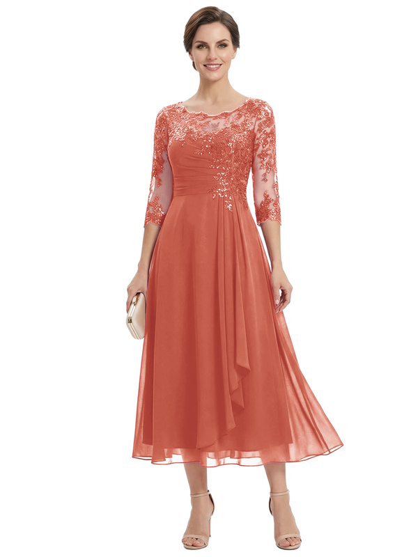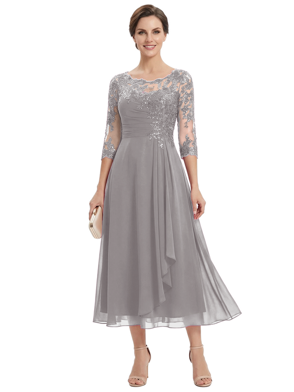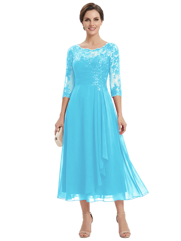 Chicsew Pretty Scoop 3/4 Sleeve Lace Sequin Mother of The Groom Dress Asymmetric Midi Chiffon Gown - ChicSew – ChicSew