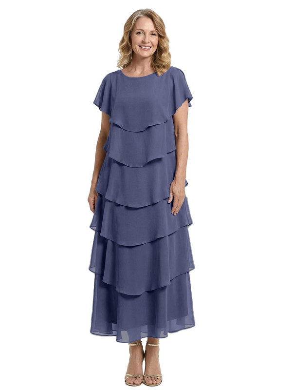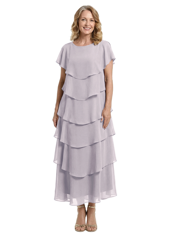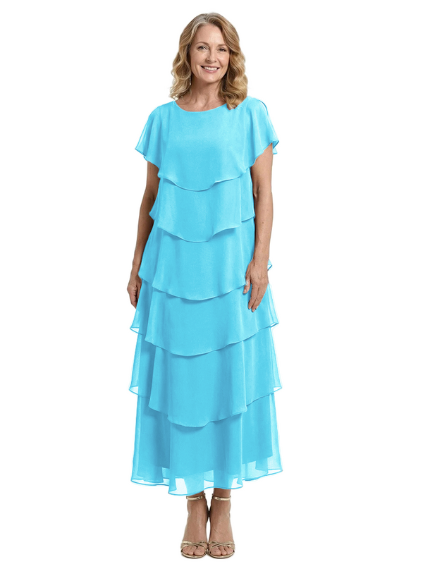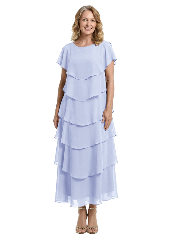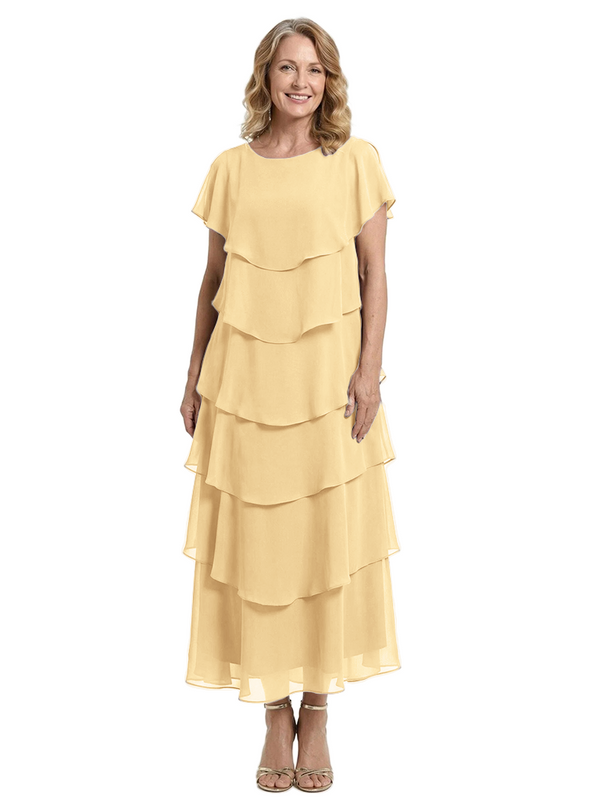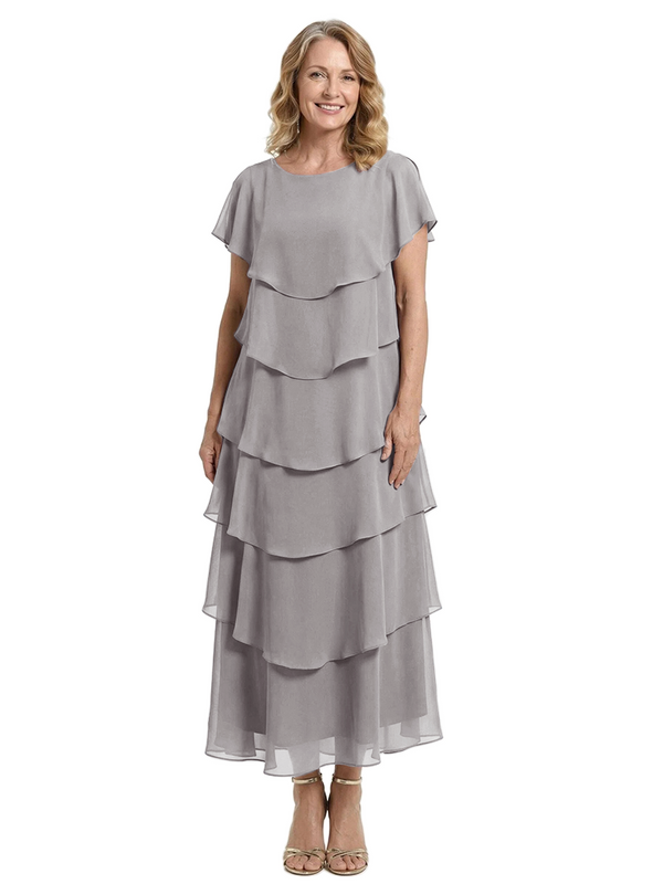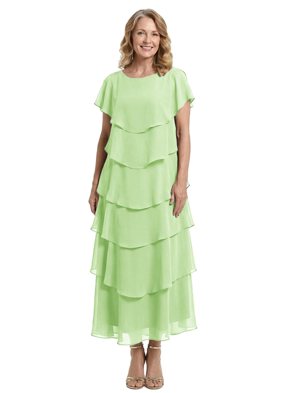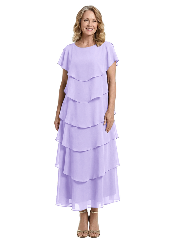 ChicSew Scoop Short Sleeve Layered Ruffle Chiffon Tea Length Casual Mother Of The Bride And Groom Dresses - ChicSew – ChicSew