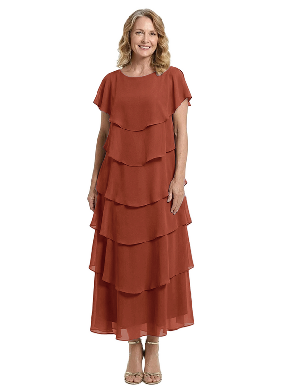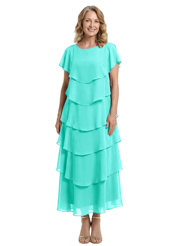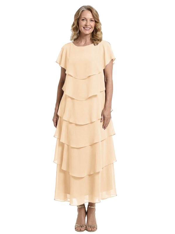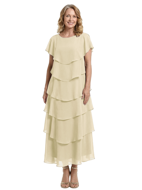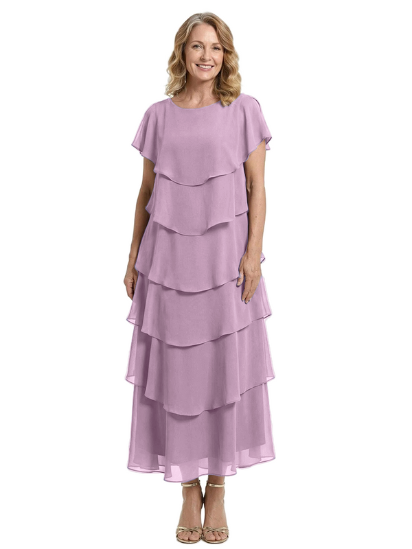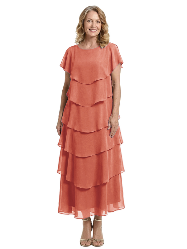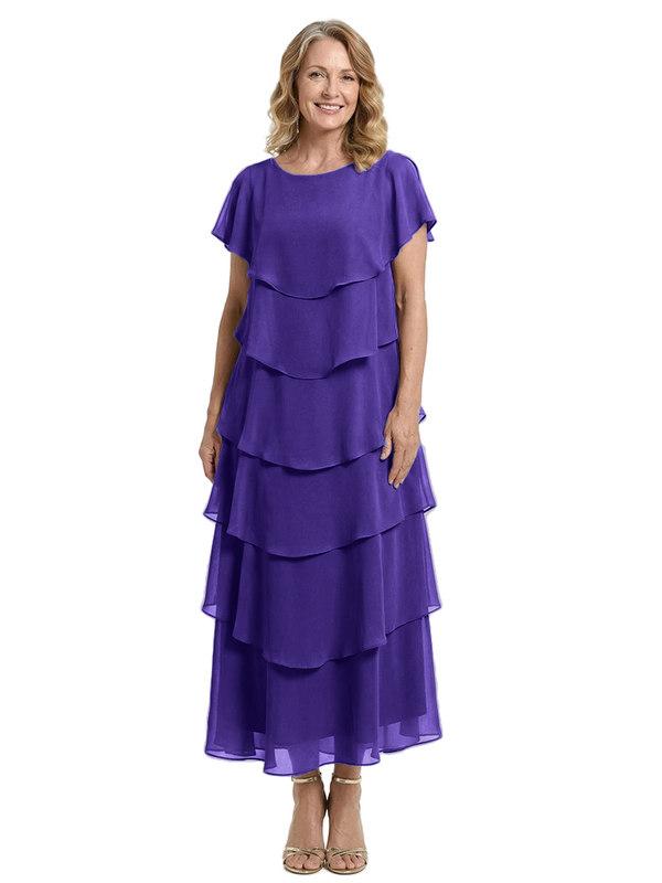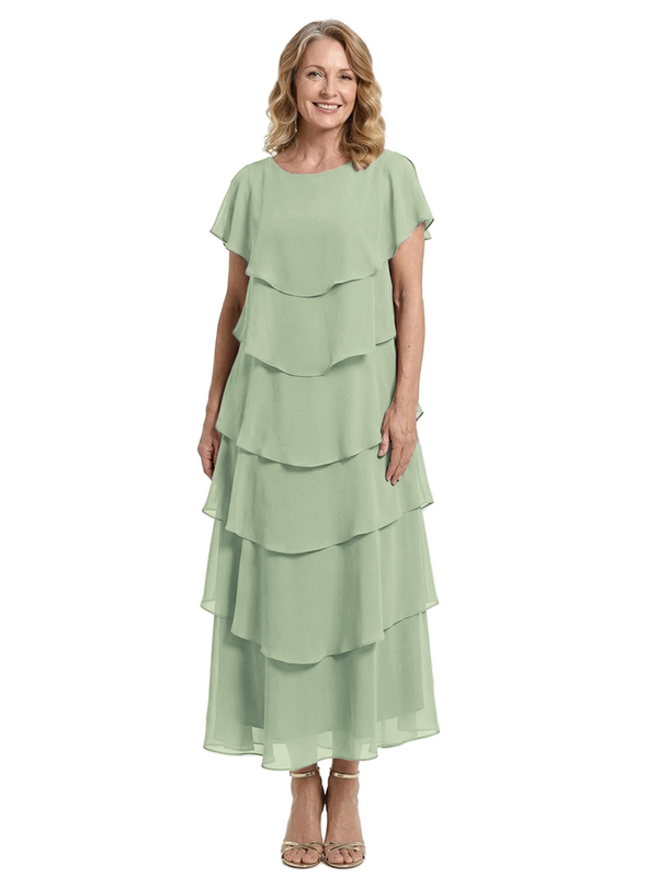 ChicSew Scoop Short Sleeve Layered Ruffle Chiffon Tea Length Casual Mother Of The Bride And Groom Dresses - ChicSew – ChicSew