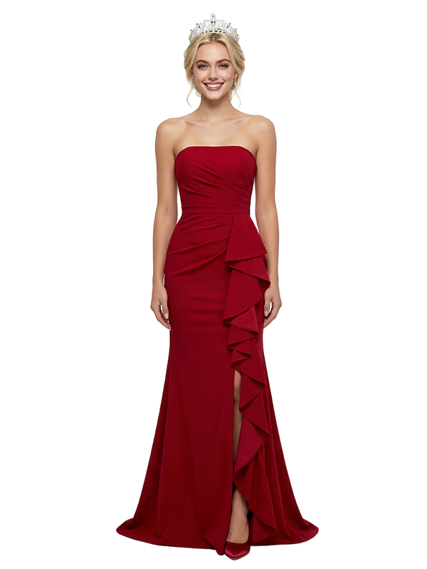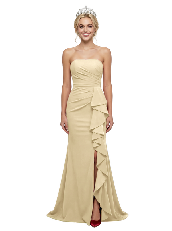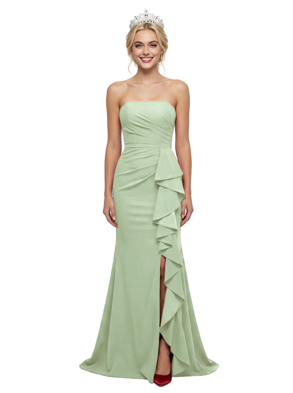ChicSew Sexy Strapless Sleeveless Mermaid Crepe Ruffles Side Slit Evening Prom Dresses
