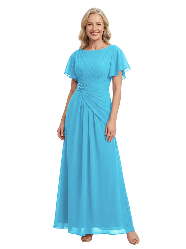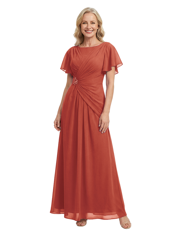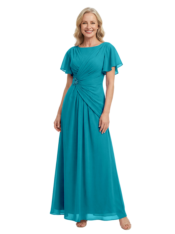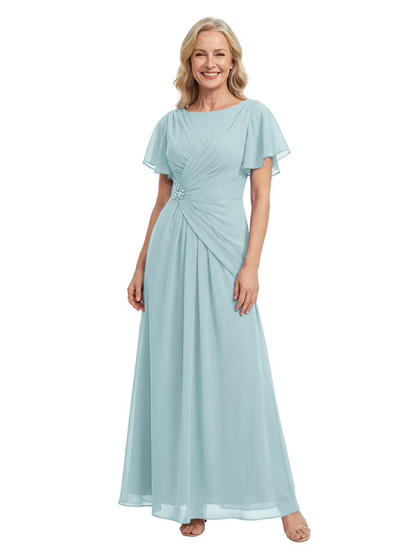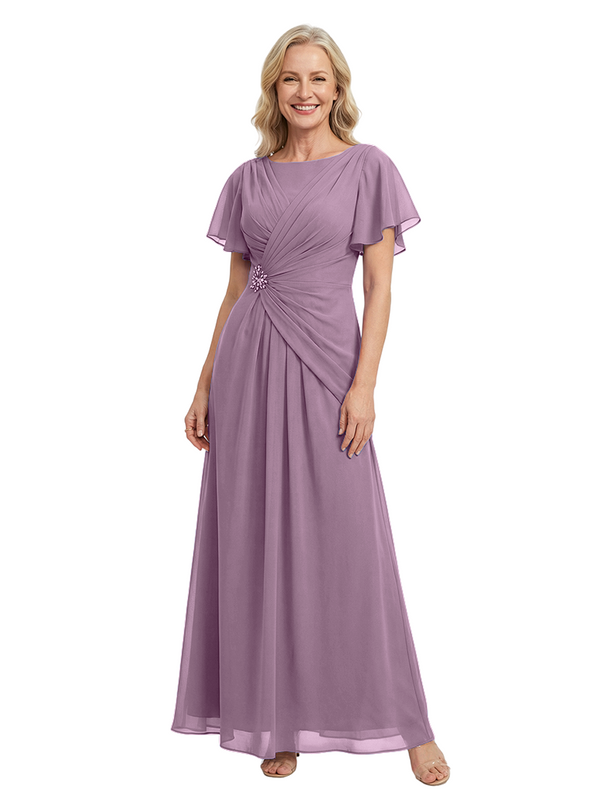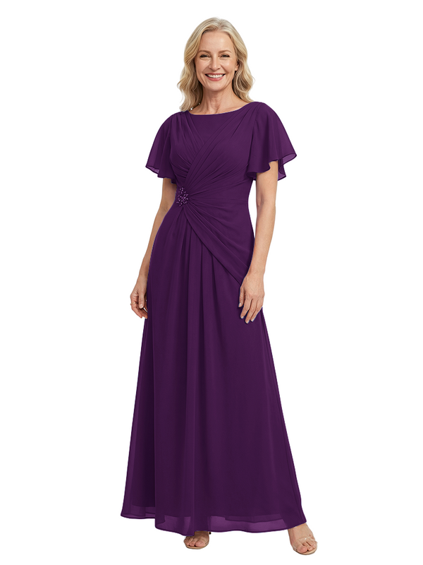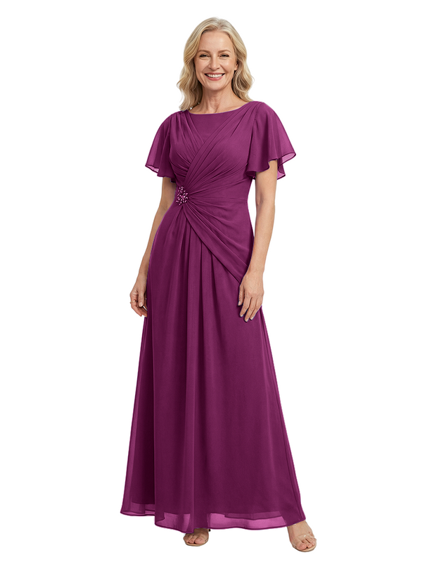 ChicSew Short Sleeves Ruched A-Line Floor Length Chiffon Sophisticated Mother Of The Bride And Groom Dresses - ChicSew – ChicSew