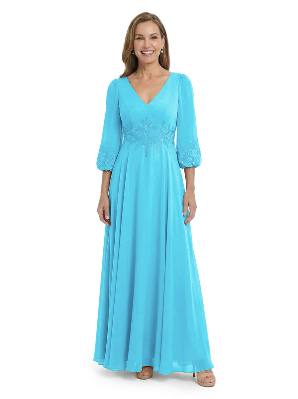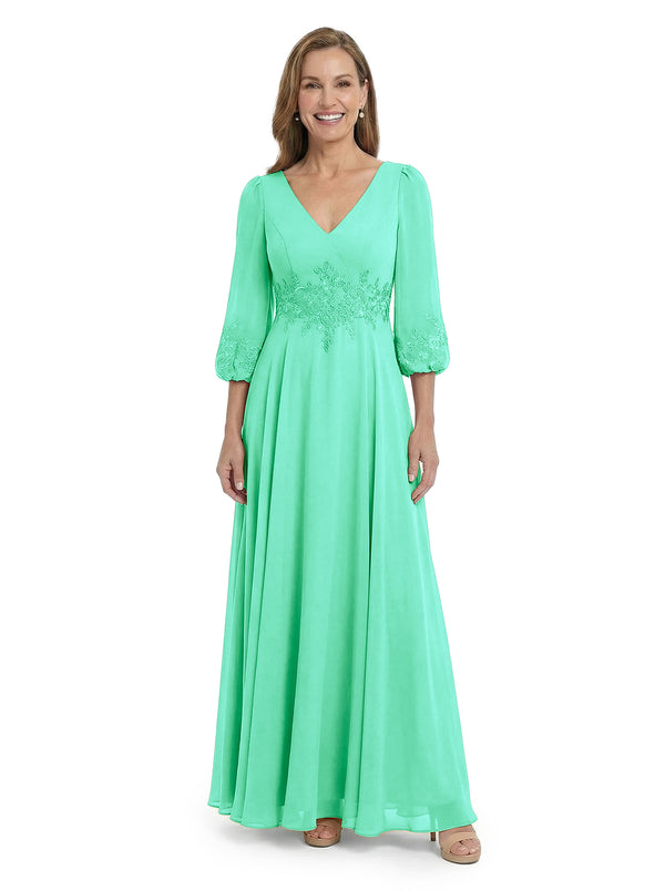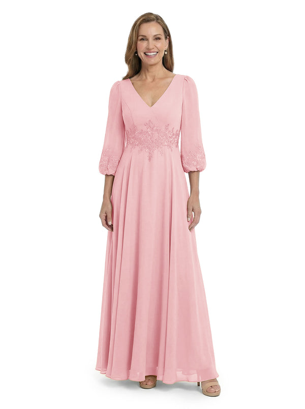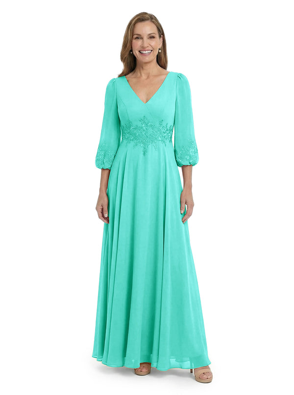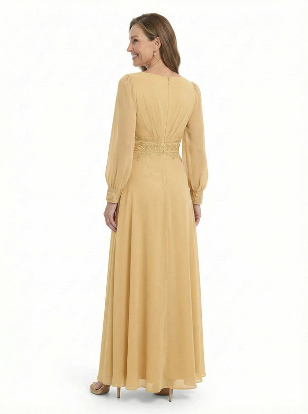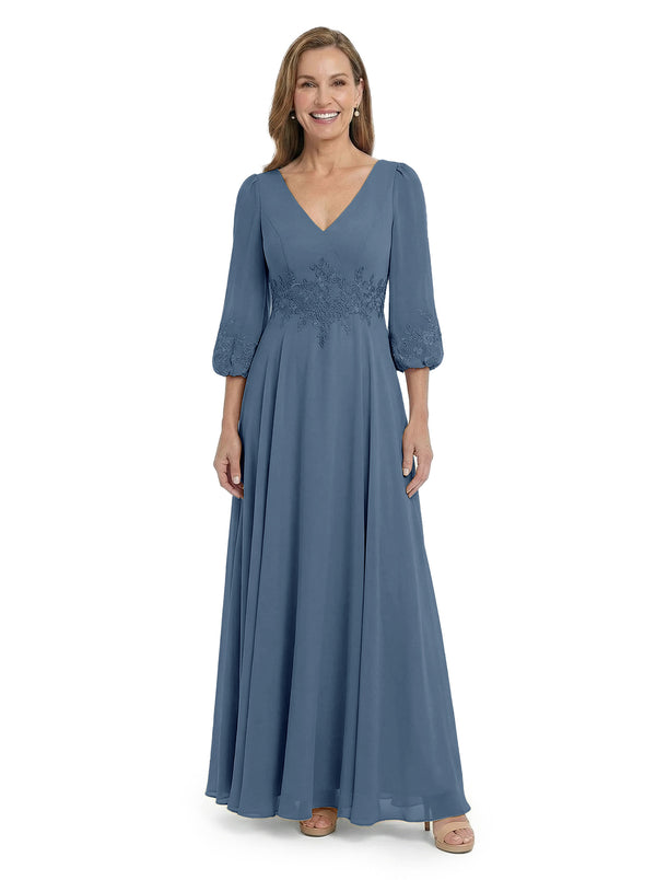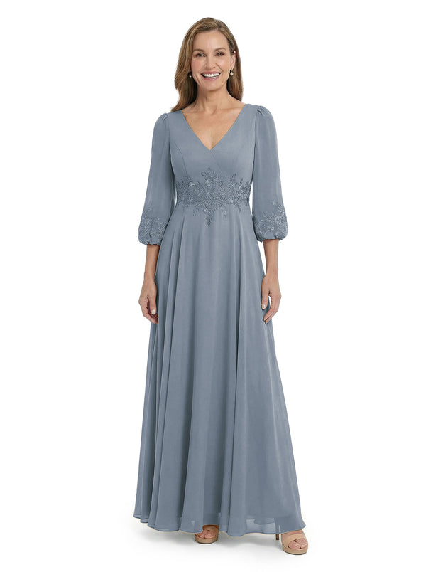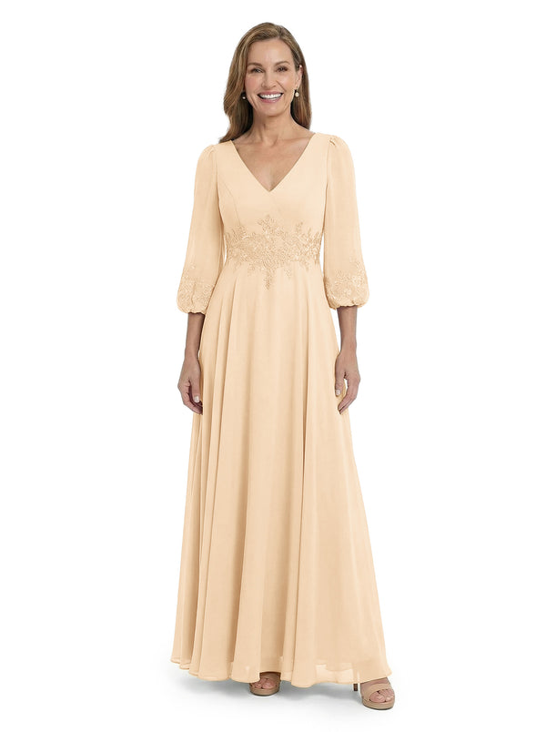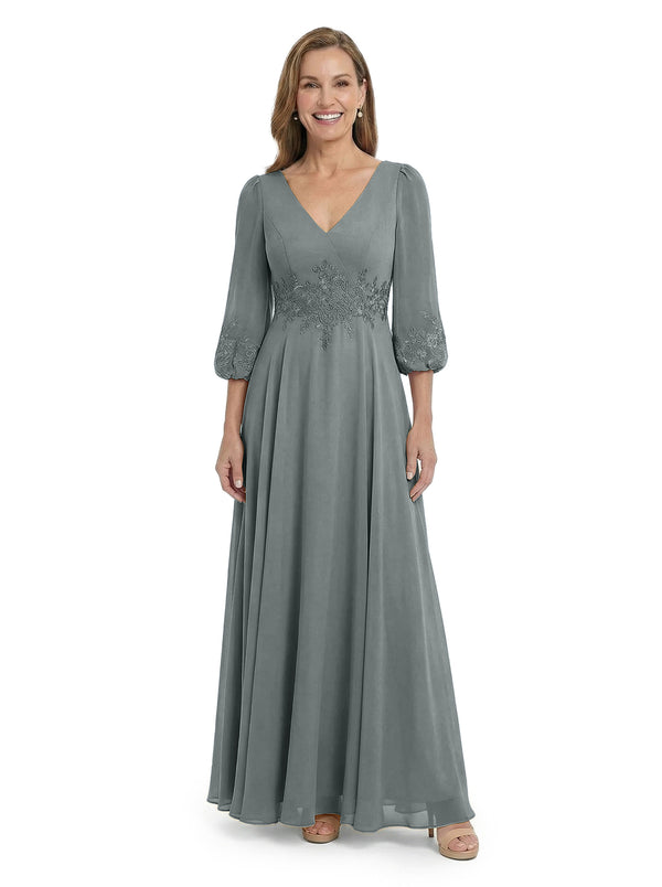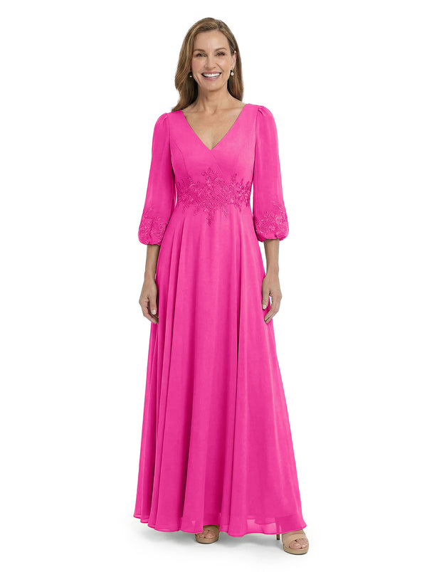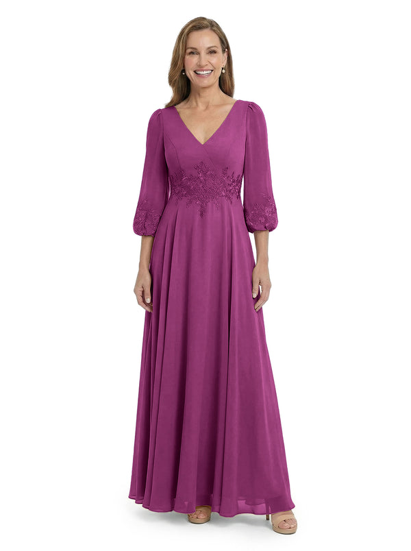 ChicSew Sophisticated V-Neck Long Sleeves Chiffon Gown A-Line Mother Of The Bride Dresses With Applique - ChicSew – ChicSew
