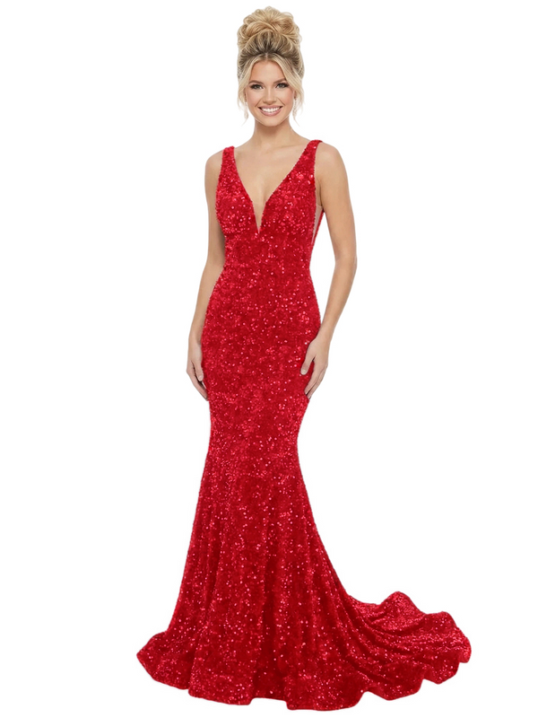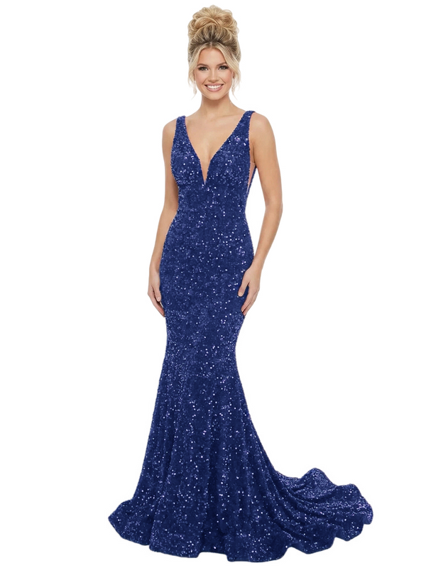 ChicSew Sparkling Sequin Mermaid Prom Dresses With Deep V-Neck Open Back Gowns - ChicSew – ChicSew