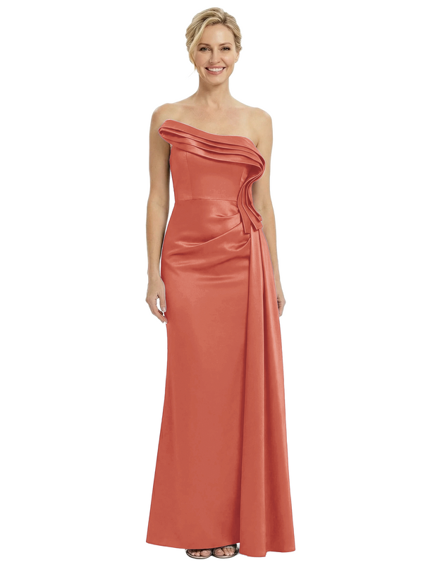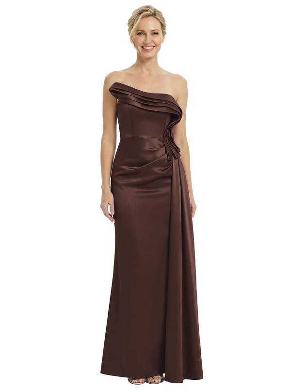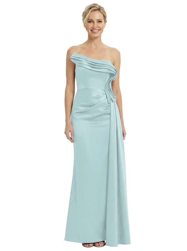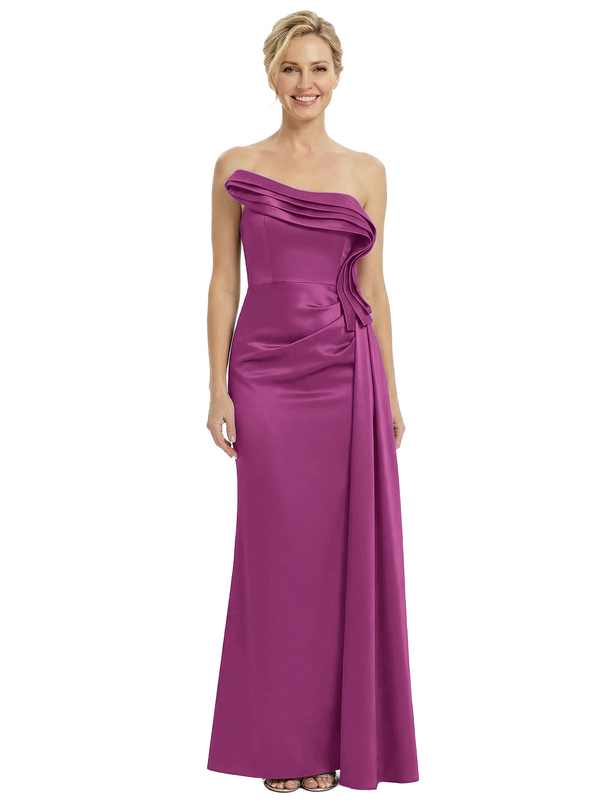 Chicsew Strapless Ruffle Mother Of The Bride Dresses Satin Modern Sheath Gown - ChicSew – ChicSew