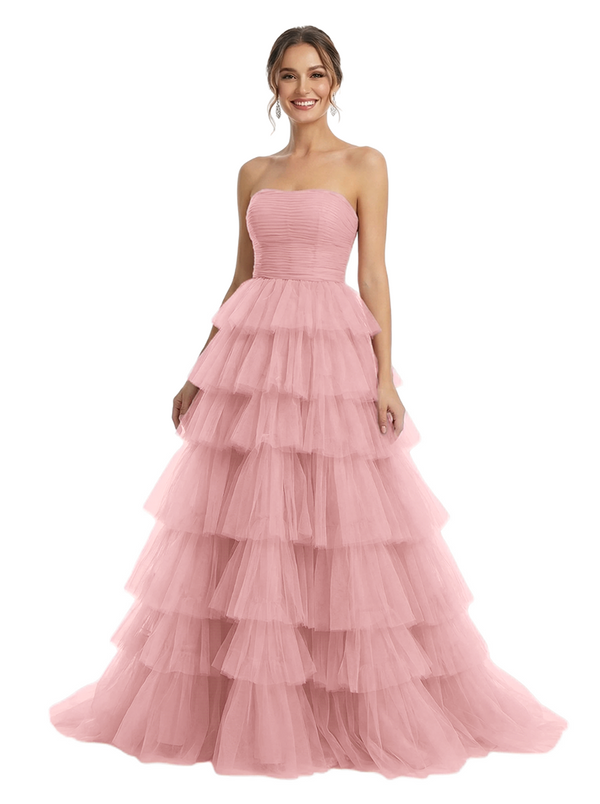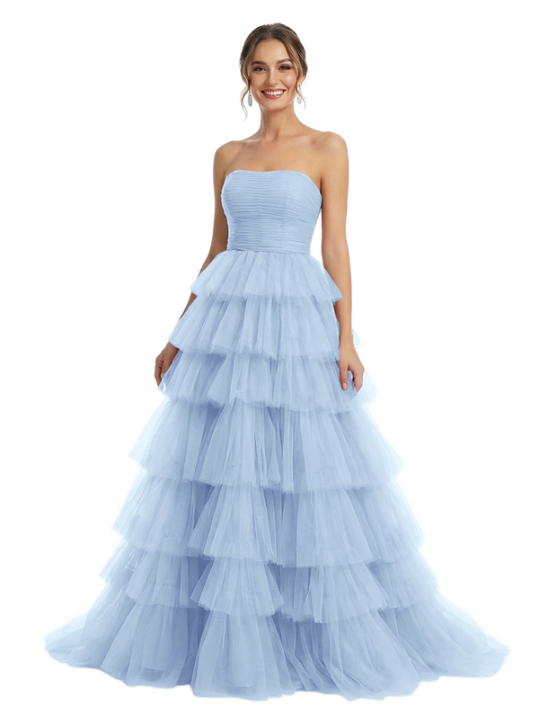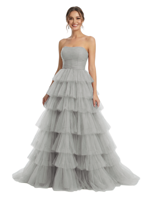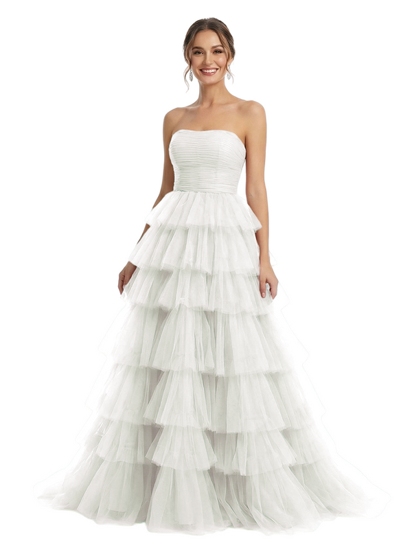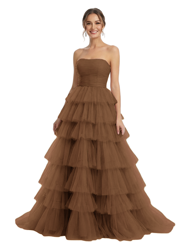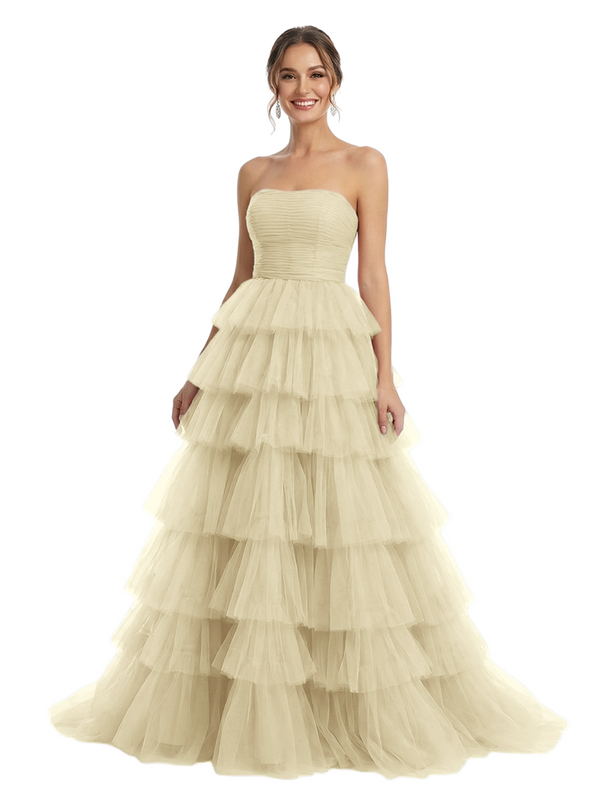 ChicSew Strapless Tiered Ruffle Tulle A-Line Maxi Long Evening Prom Dresses - ChicSew – ChicSew