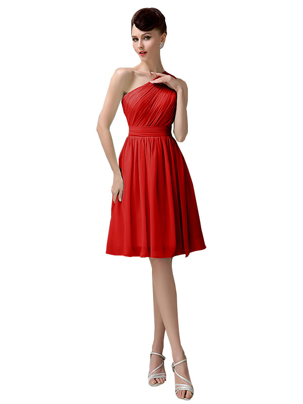 Simple A-line Chiffon One Shoulder Short Bridesmaid Dresses - ChicSew – ChicSew