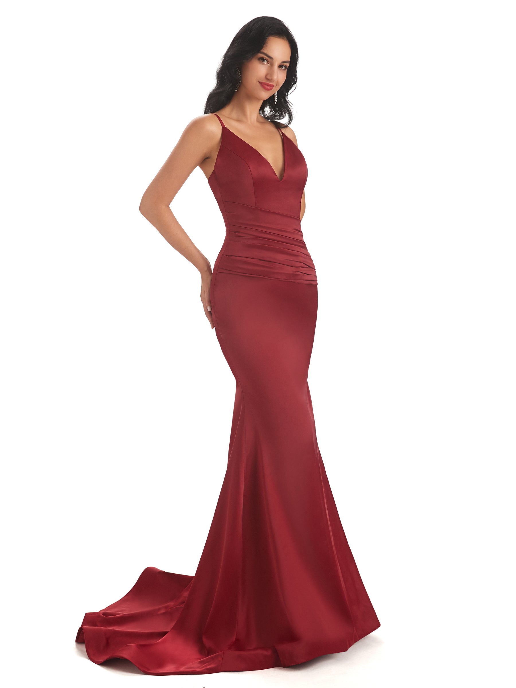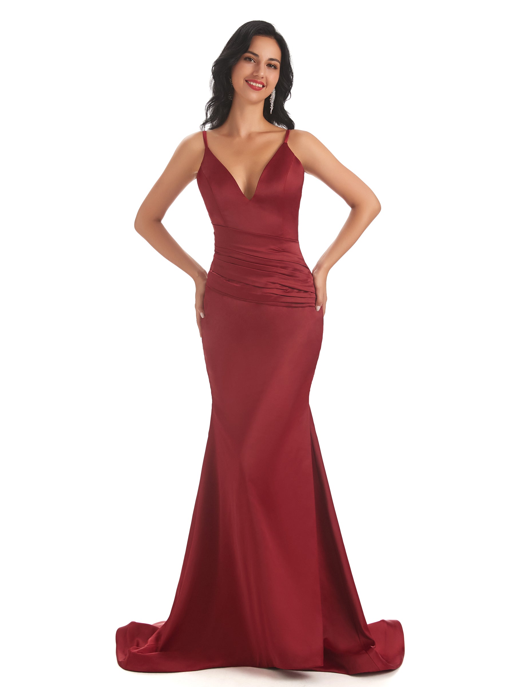 Sexy Spaghetti Straps Soft Satin V-neck Mermaid Long Bridesmaid Dresses $118.99