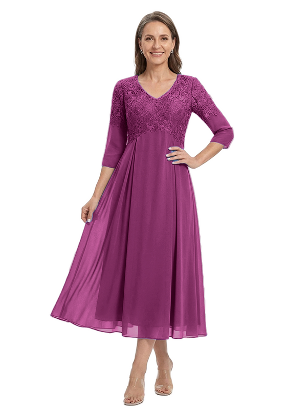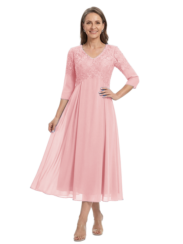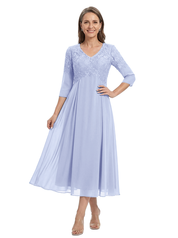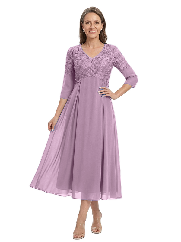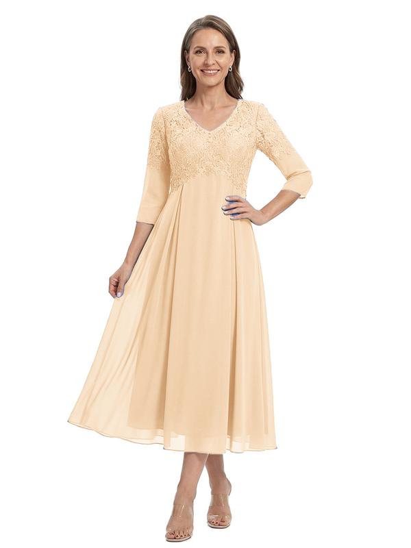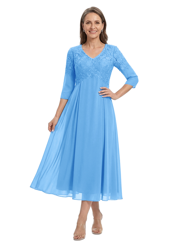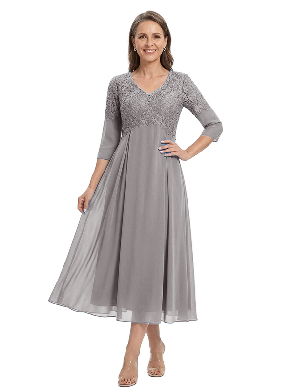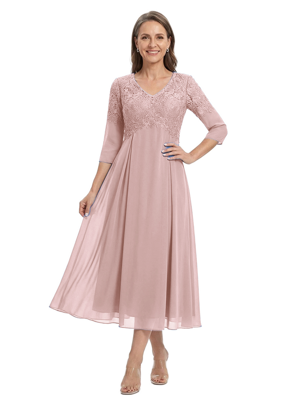 ChicSew V-Neck 3/4 Sleeve Lace Applique A Line Tea Length Chiffon Romantic Mom Of The Groom Dresses - ChicSew – ChicSew
