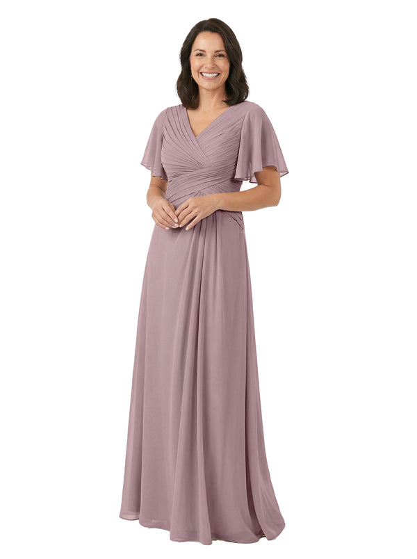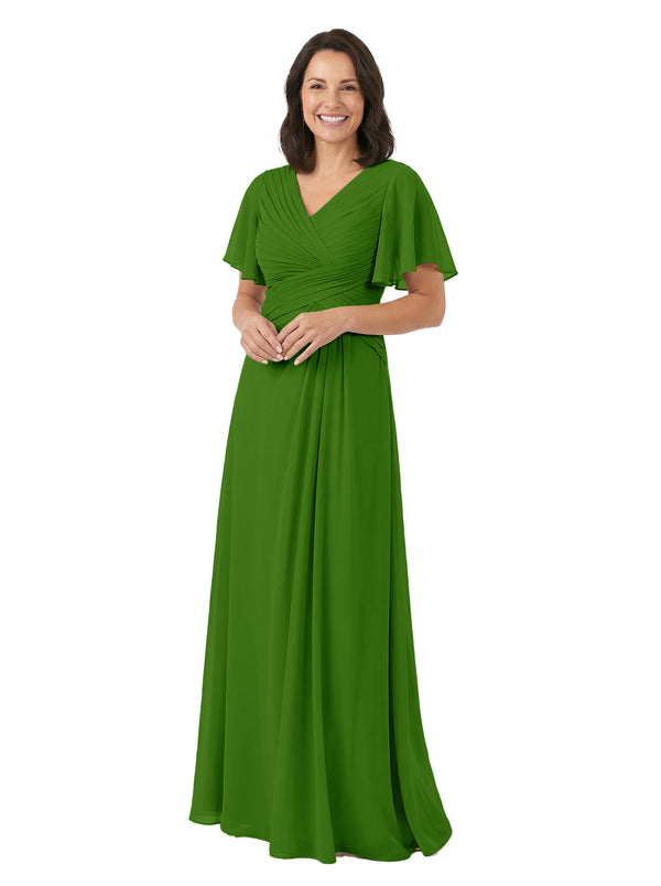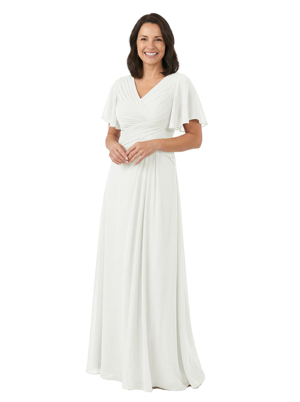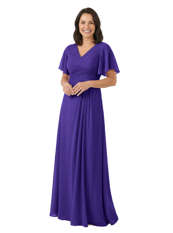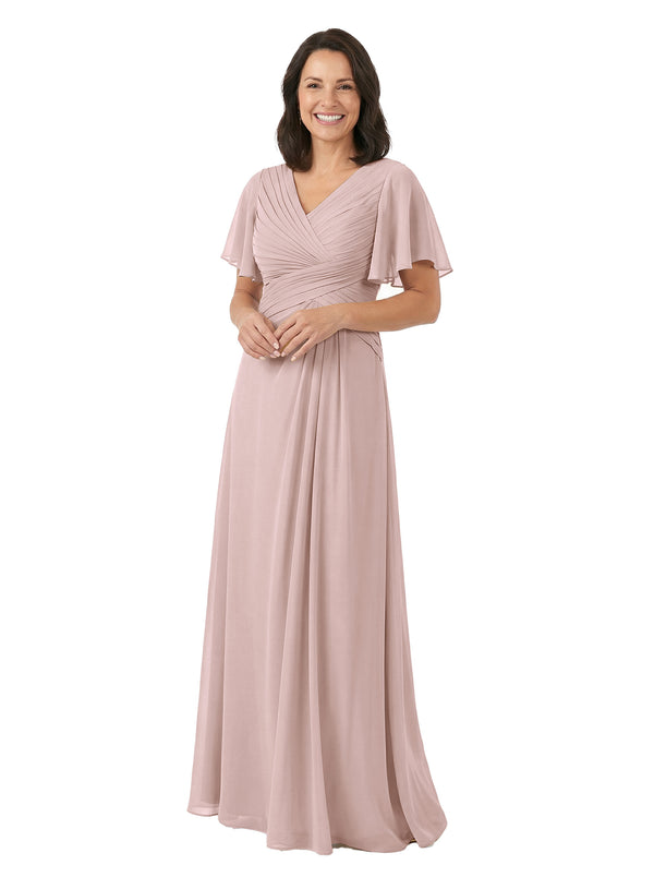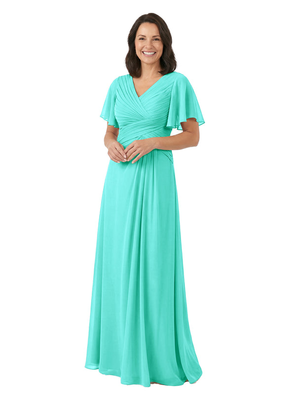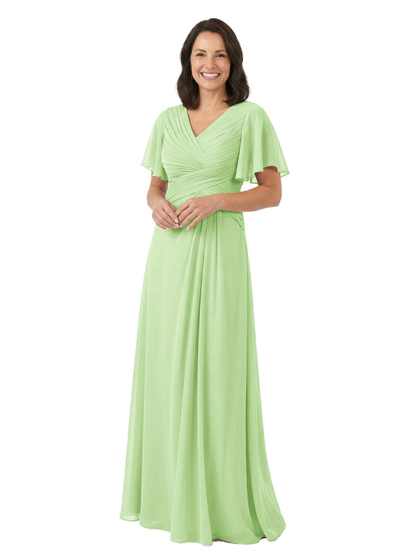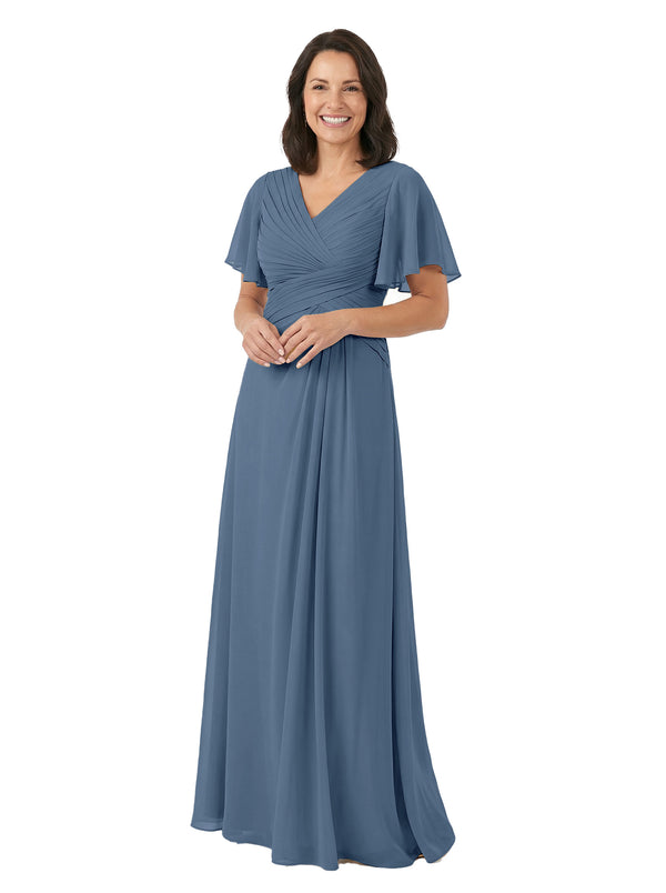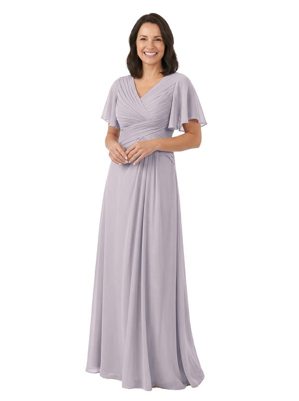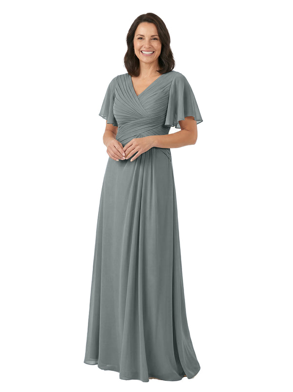 ChicSew V-Neck Short Sleeves Overlay Layered Chiffon Floor-Length Casual Mother of the Bride Dresses - ChicSew – ChicSew