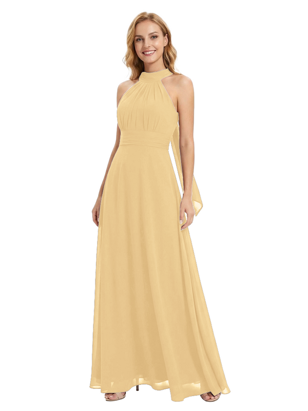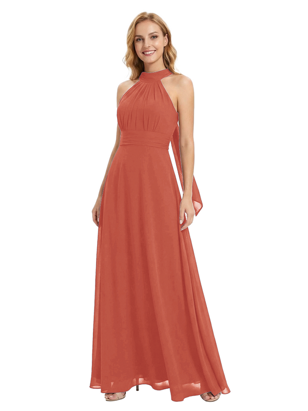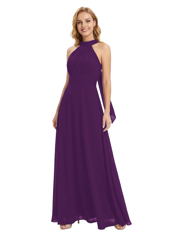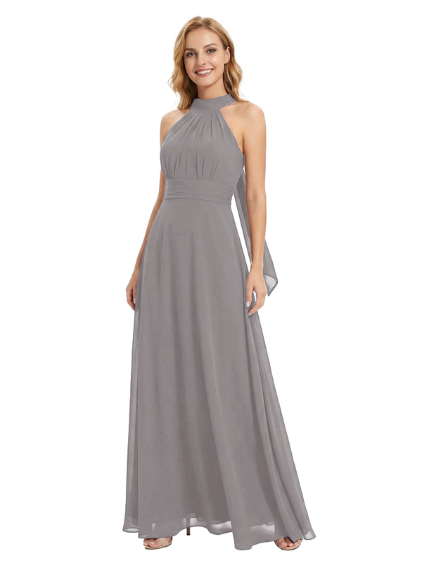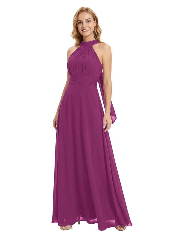 Chicsew Vintage Halter Sleeveless Ruched A-Line Chiffon Mother of The Bride Gown- ChicSew – ChicSew