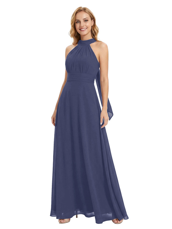 Chicsew Vintage Halter Sleeveless Ruched A-Line Chiffon Mother of The Bride Gown
