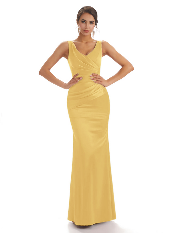 Sexy Soft Satin Sleeveless With Pleats V-neck Floor-Length Mermaid Bridesmaid Dresses - ChicSew – ChicSew