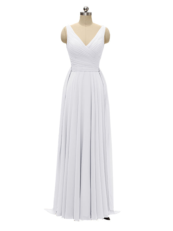 Unique A-line V Neck Chiffon Floor Length Bridesmaid Dresses - ChicSew – ChicSew