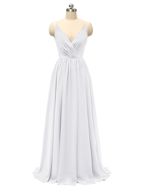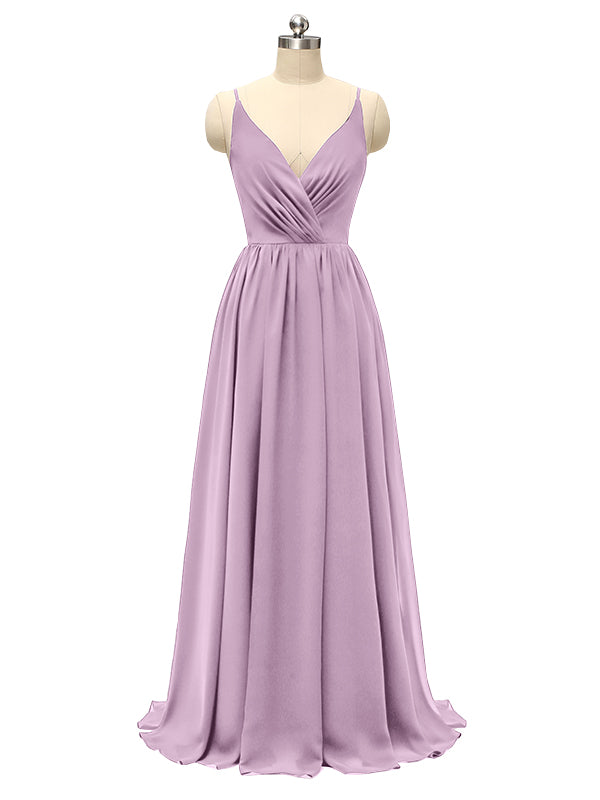 A-line Spaghetti Straps V Neck Chiffon Floor Length Bridesmaid Dresses - Chicsew – ChicSew