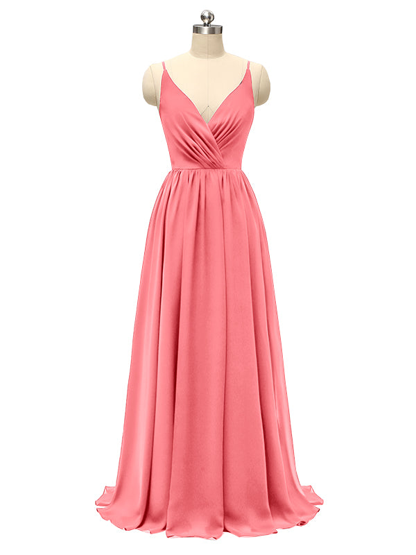 Elegant Spaghetti Straps V Neck Chiffon Floor Length Bridesmaid Dresses