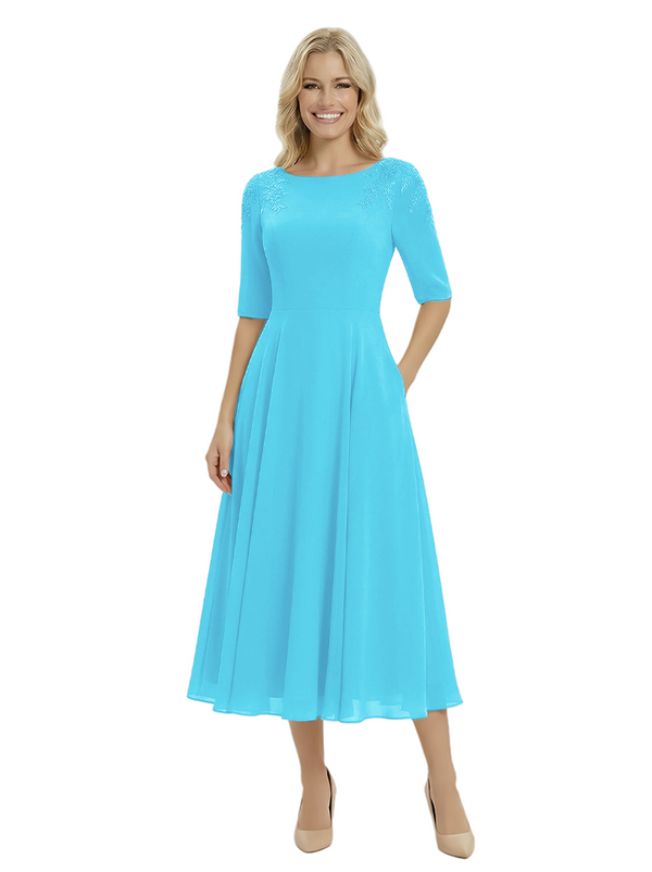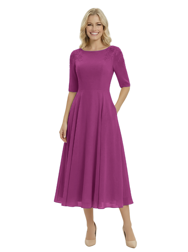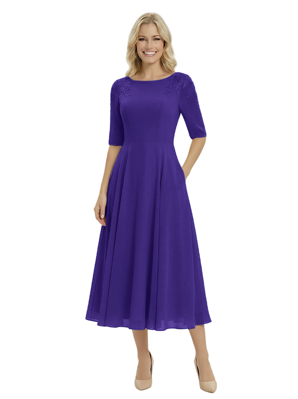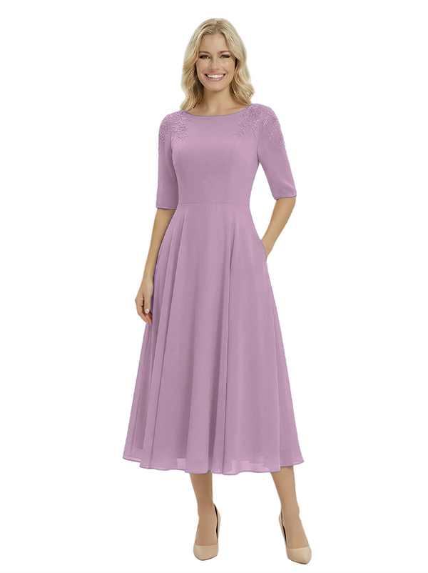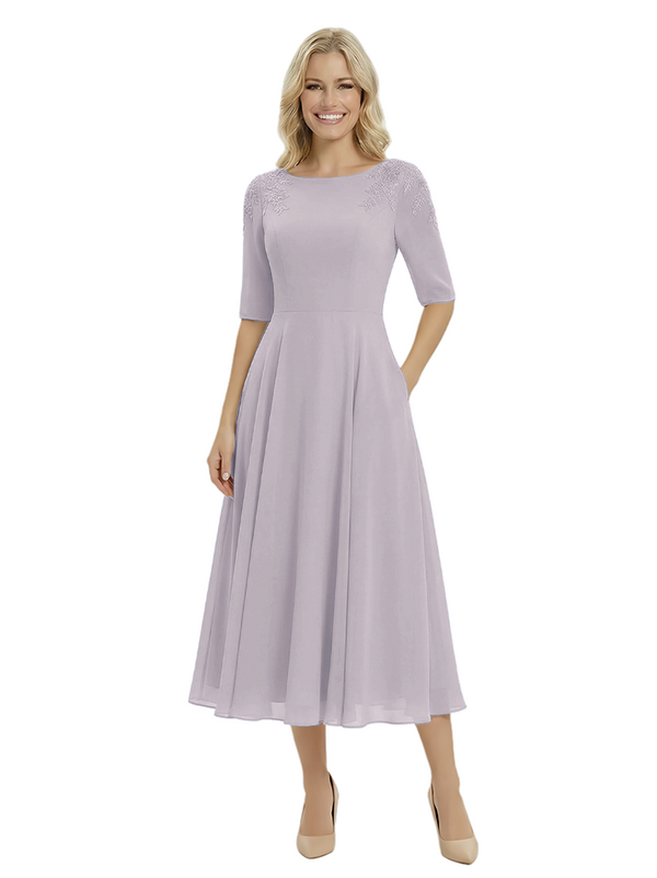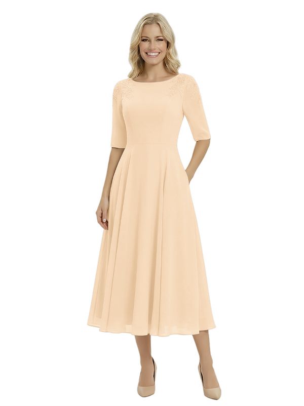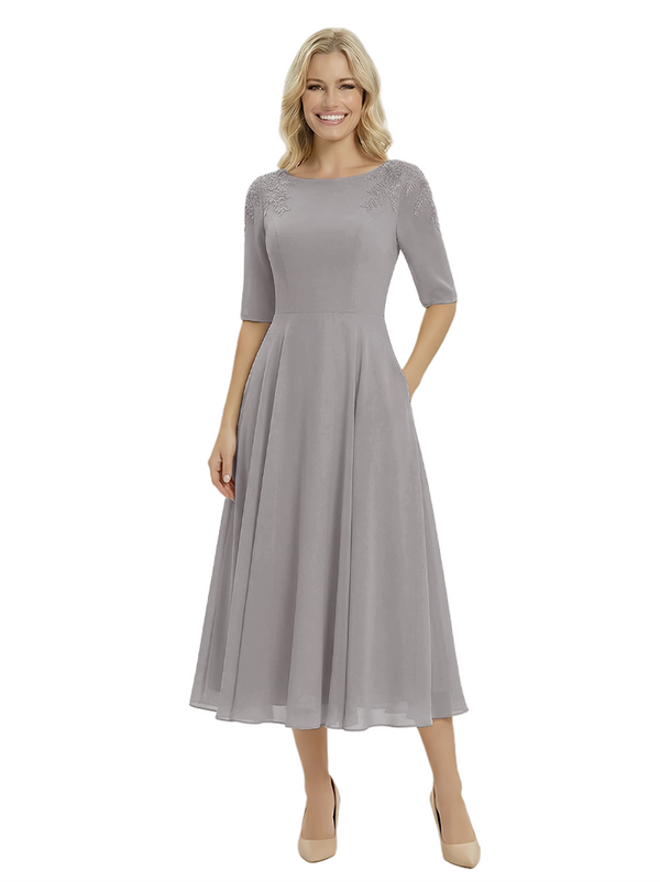 Classy A-Line Tea-Length Long Sleeves Chiffon Maxi Mother Of The Bride Dress- ChicSew – ChicSew