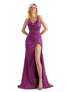 Cowl Neck Champagne Criss Cross Satin Bridesmaid Dresses $139.99