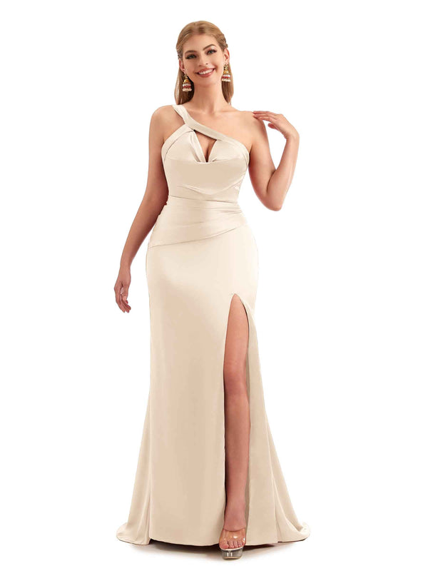 Cutout Satin Boho Bridesmaid Gown One Shoulder