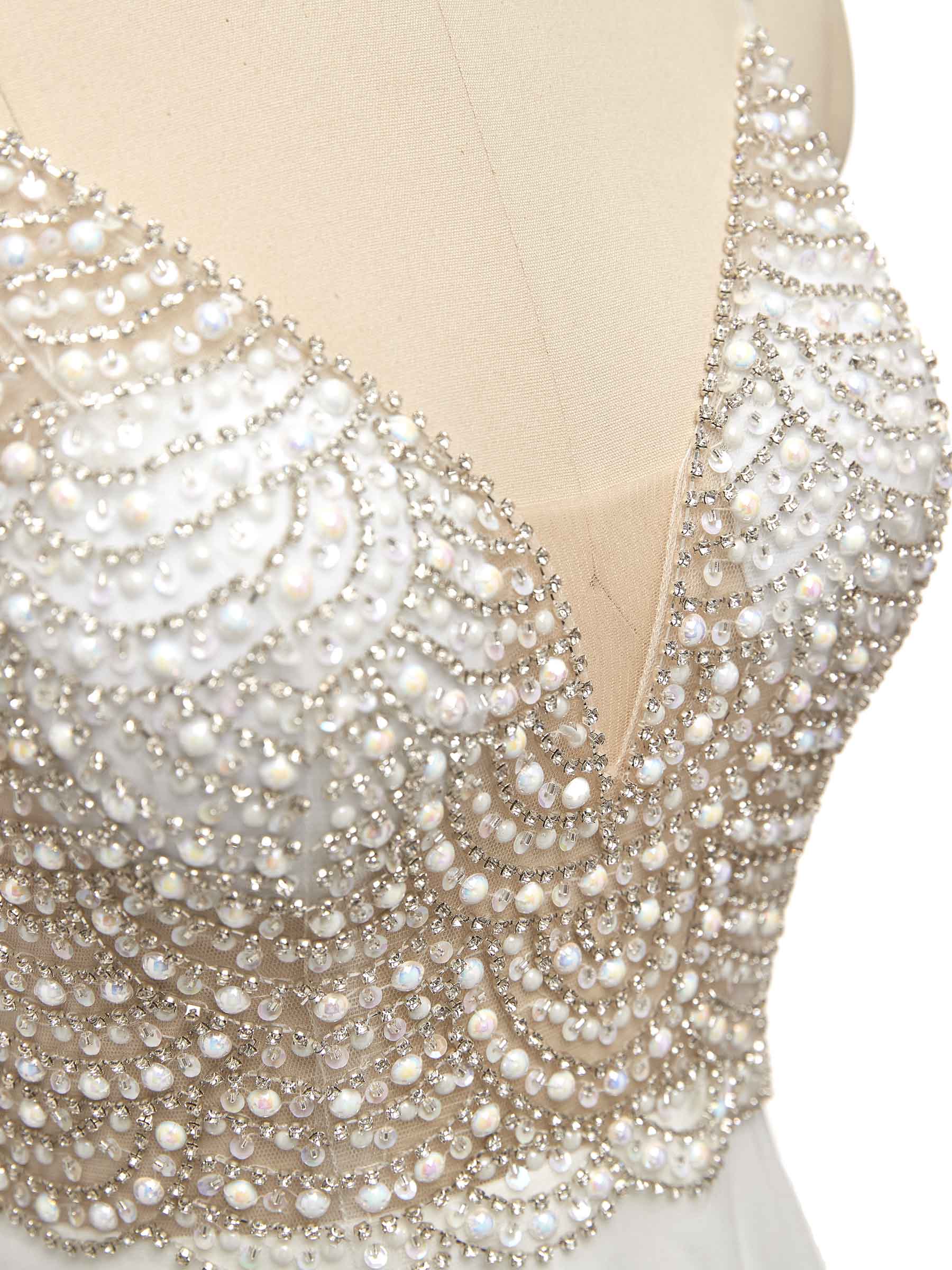 Material: chiffon, beading, rhinestone, sequine, pongee.