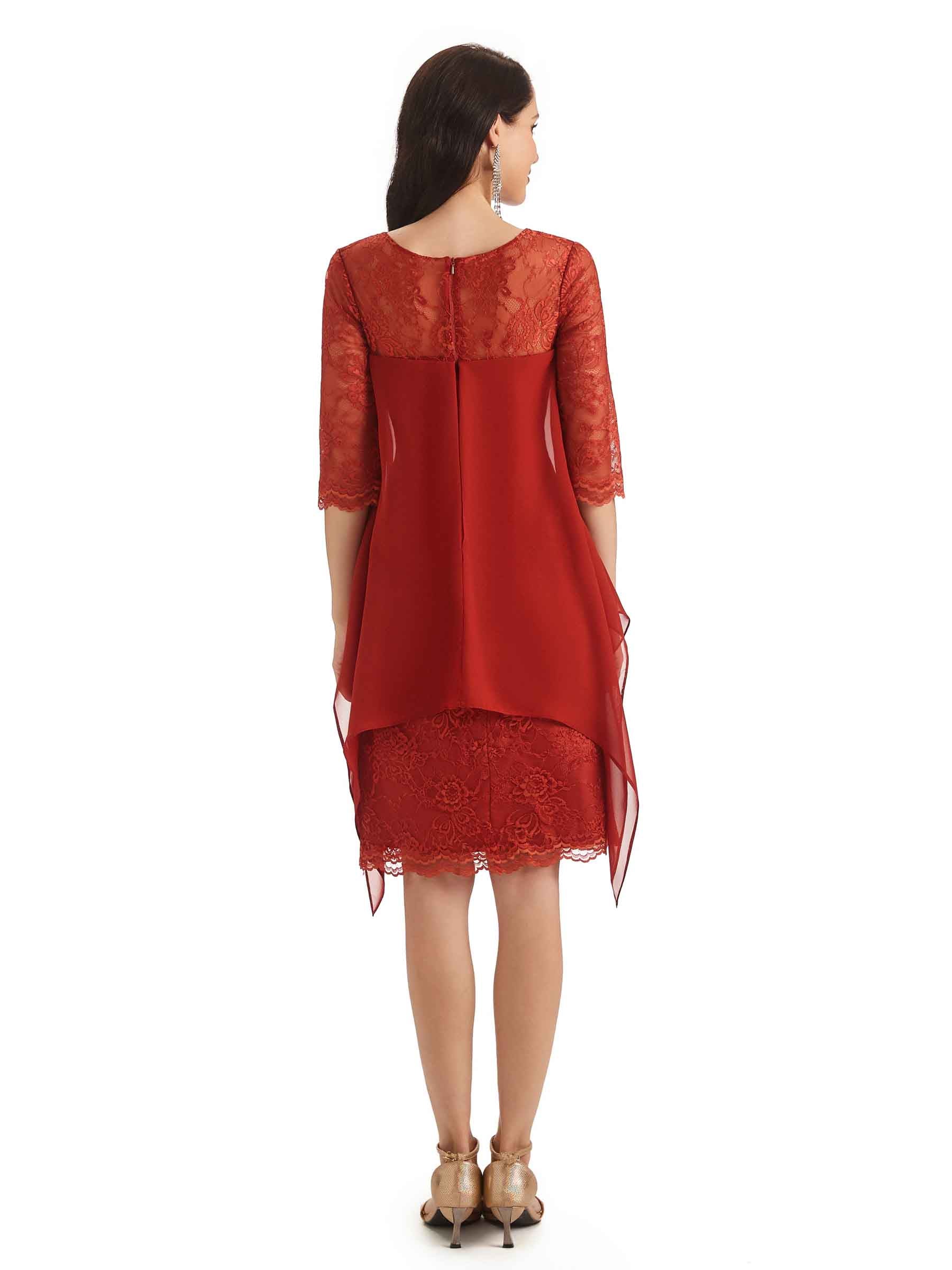 Elegant Chiffon Lace Cap Sleeve Knee Length Mother Of The Bride DressesElegant Chiffon Lace Cap Sleeve Knee Length Mother Of The Bride Dresses