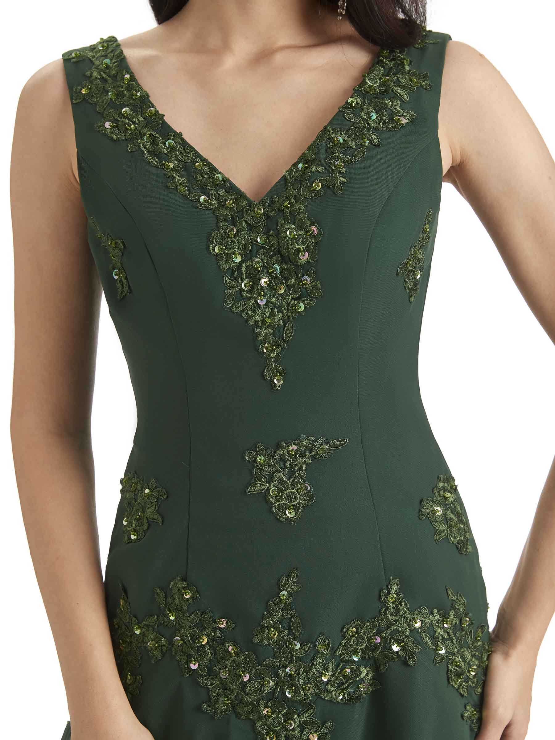 Elegant Lace Short Sleeves Chiffon V-neck Floor-length Mother of The Bride DressesElegant Lace Short Sleeves Chiffon V-neck Floor-length Mother of The Bride Dresses