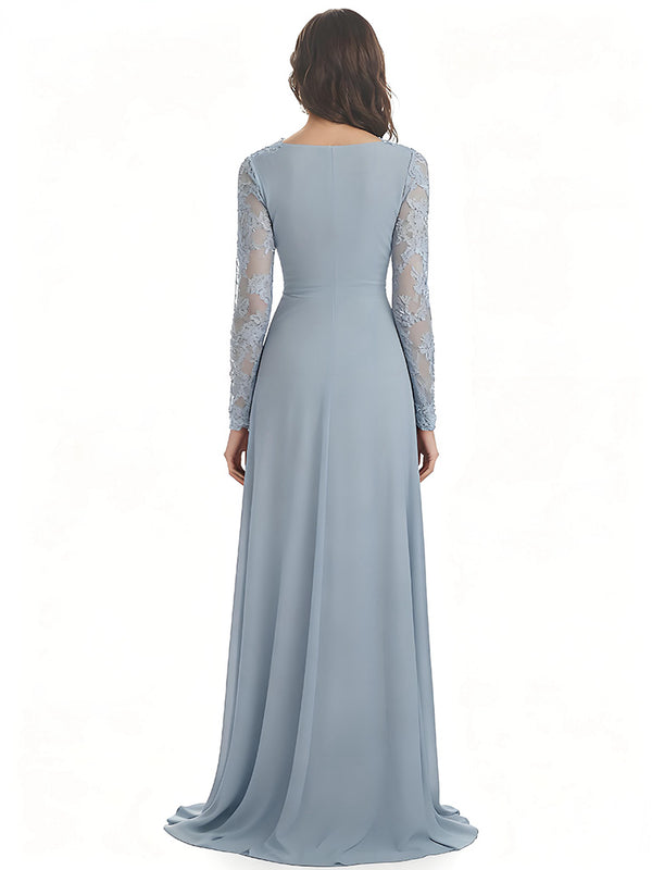Elegant Side Slit Chiffon Long Mother of The Bride Dresses