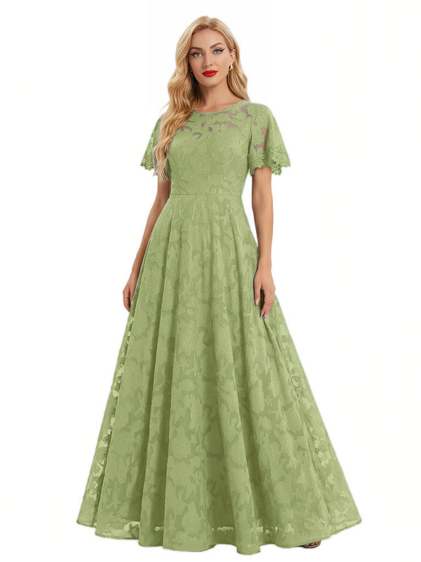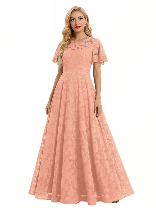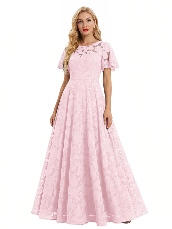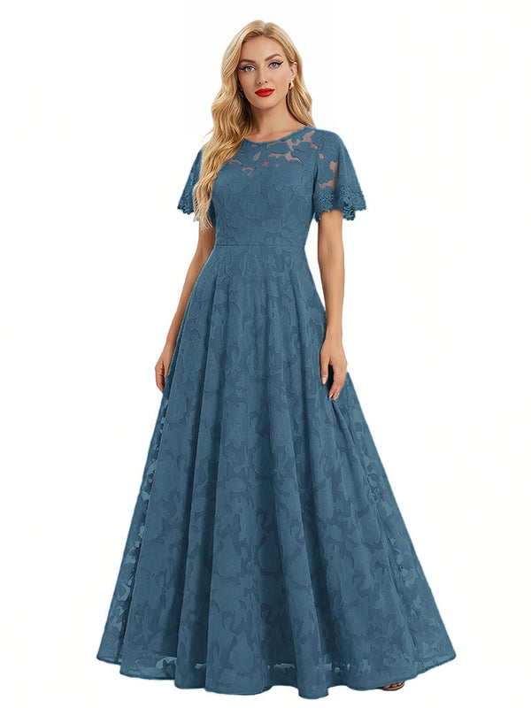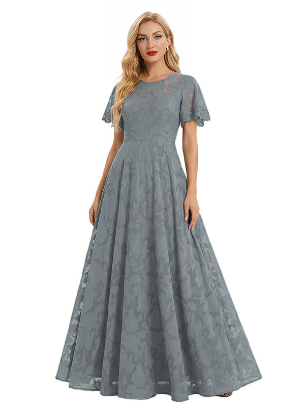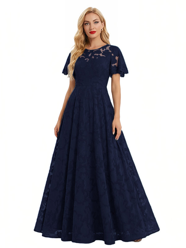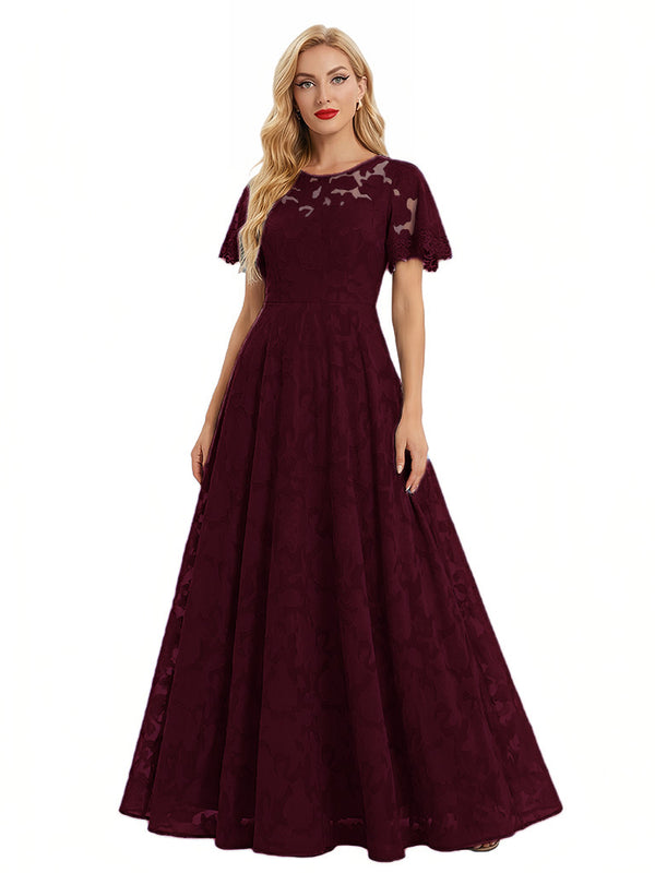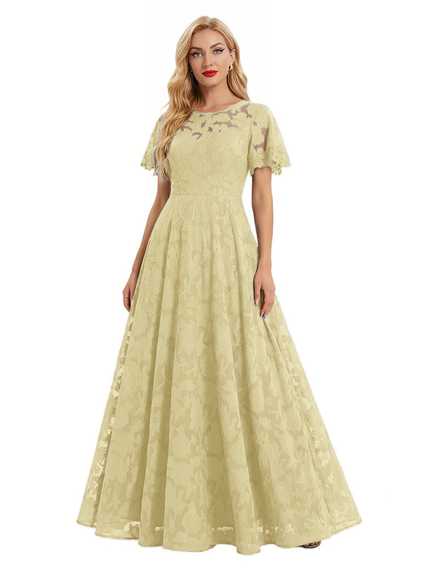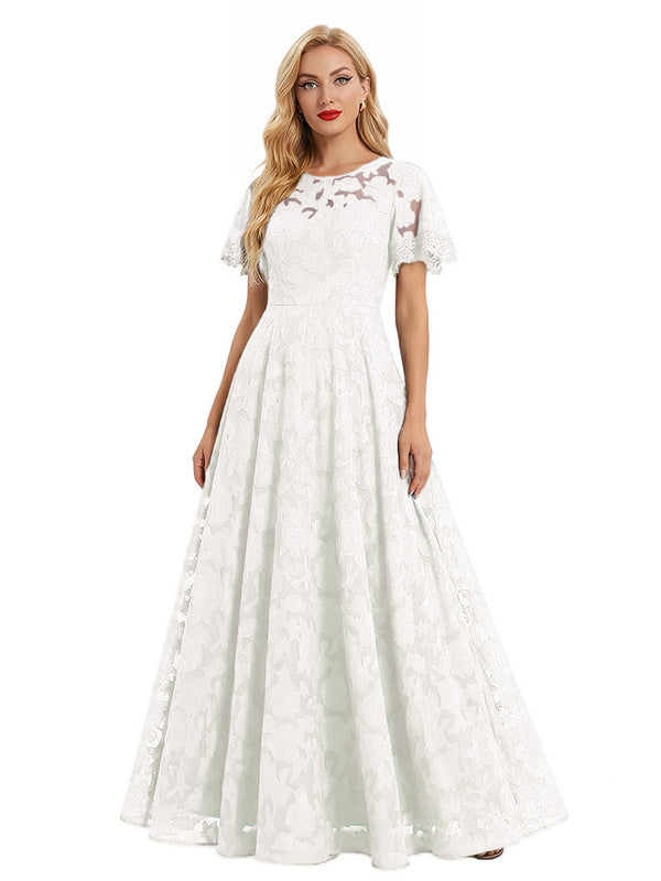 Elegant Flutter Sleeves Jewel Floral Burnout Chiffon A-Line Formal Evening Dresses - ChicSew – ChicSew