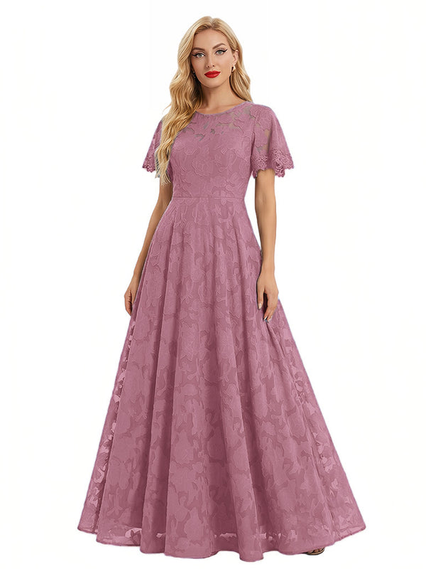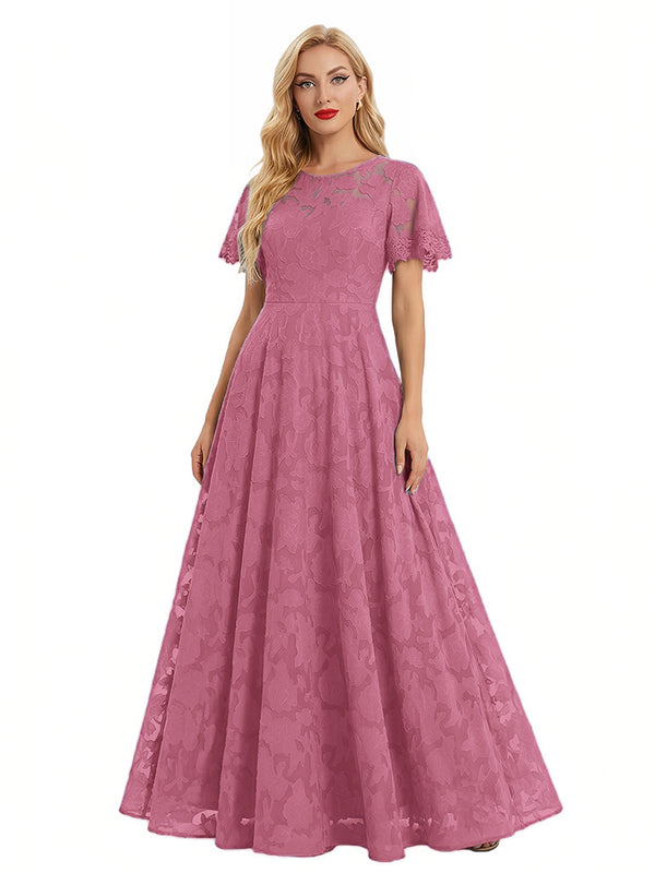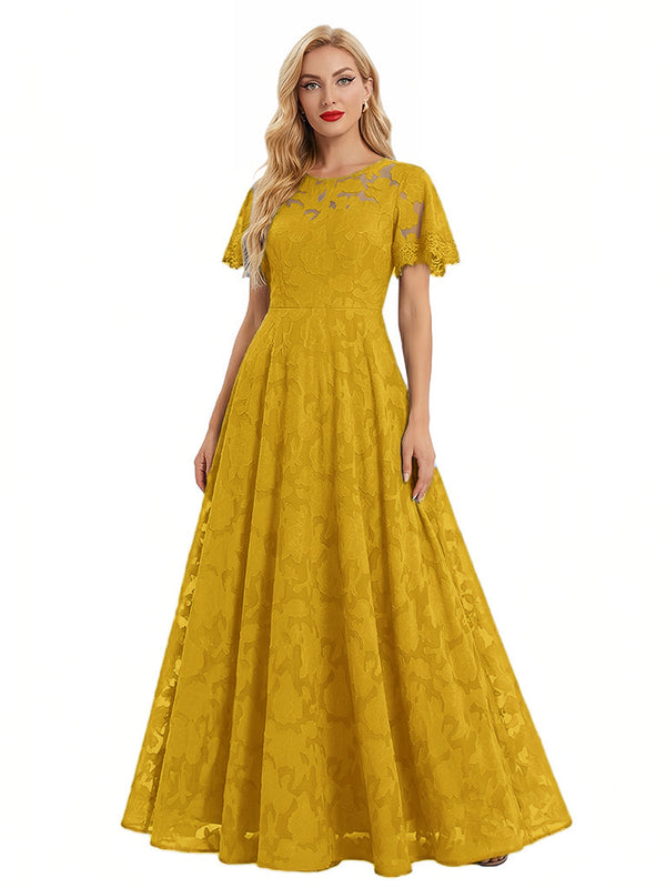 Elegant Lace Short Sleeves Chiffon V-neck Floor-length Mother of The Bride DressesElegant Lace Short Sleeves Chiffon V-neck Floor-length Mother of The Bride Dresses
