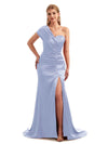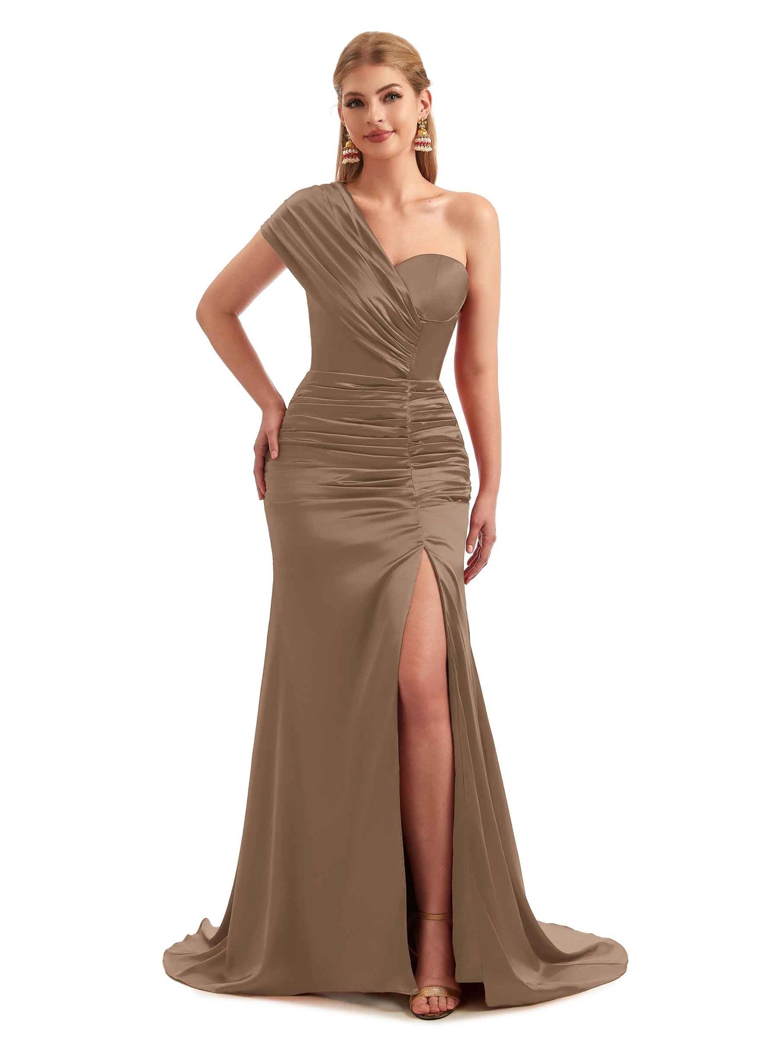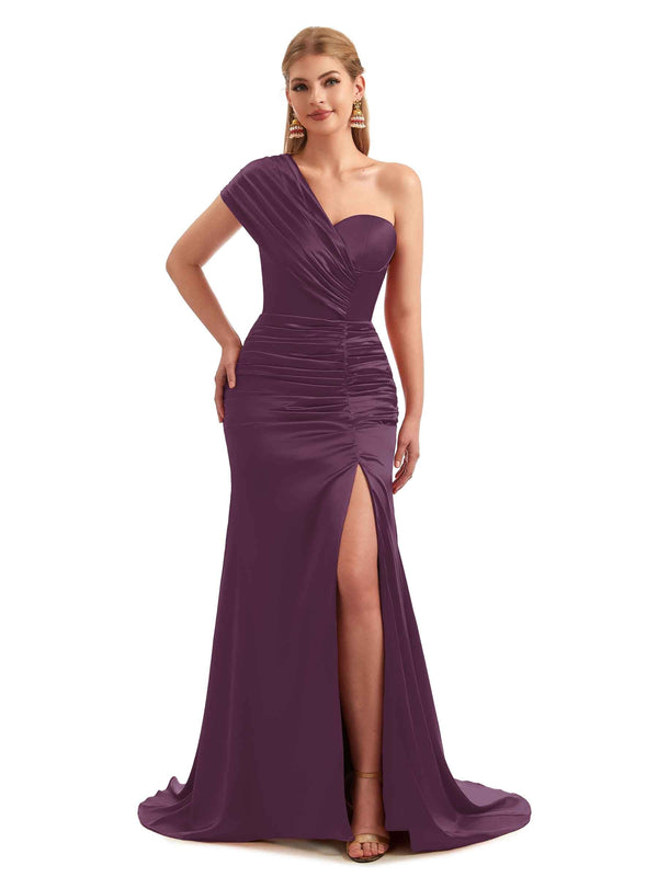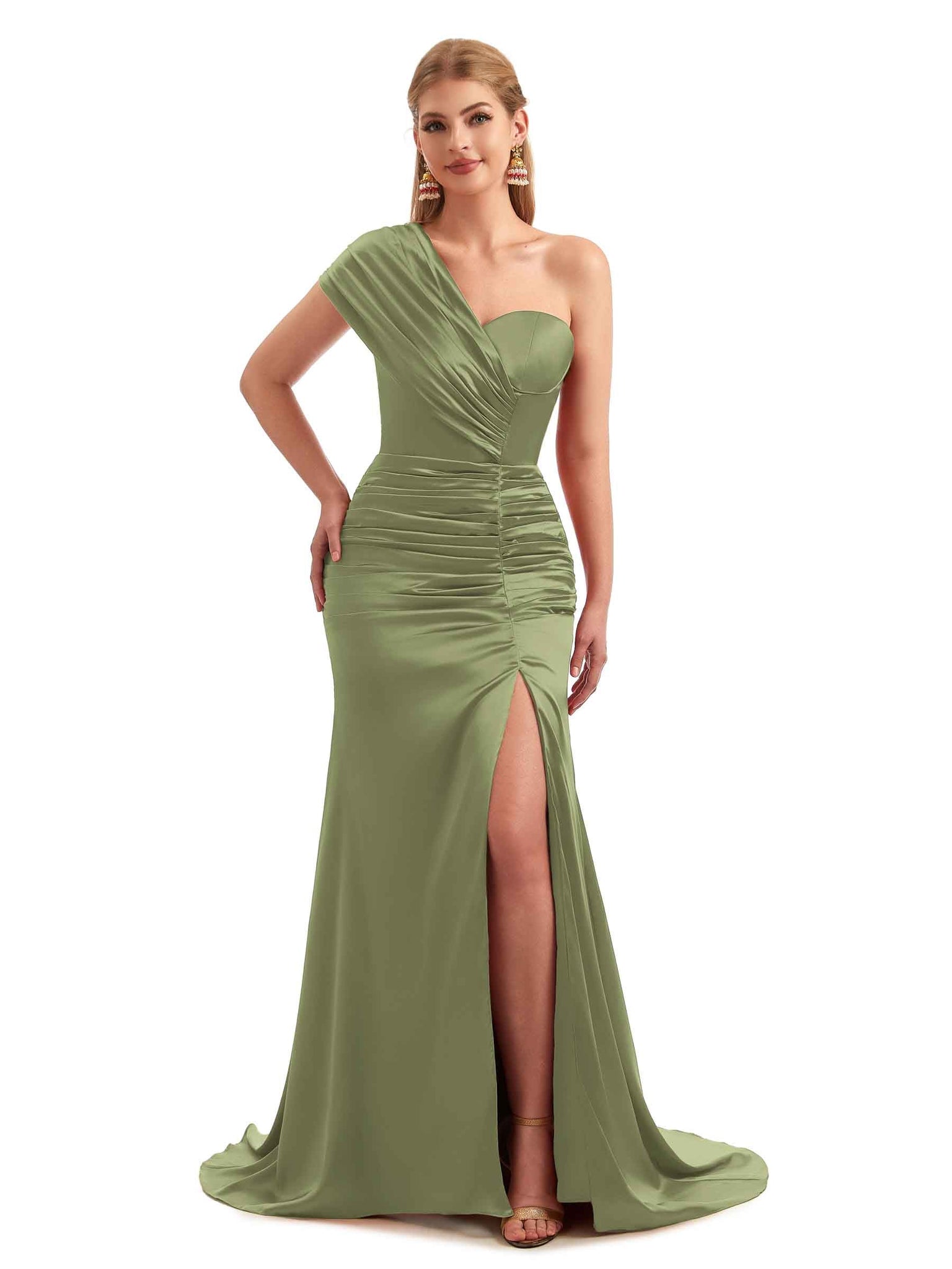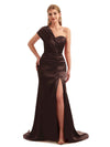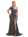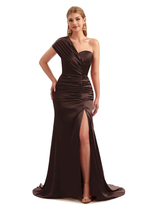 Elegant Black Long One-Shoulder Satin Bridesmaid Dresses - ChicSew – ChicSew