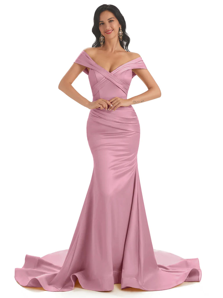 Elegant Cap Sleeves Soft Satin Mermaid Long Bridesmaid Dresses In Stock - ChicSew – ChicSew