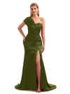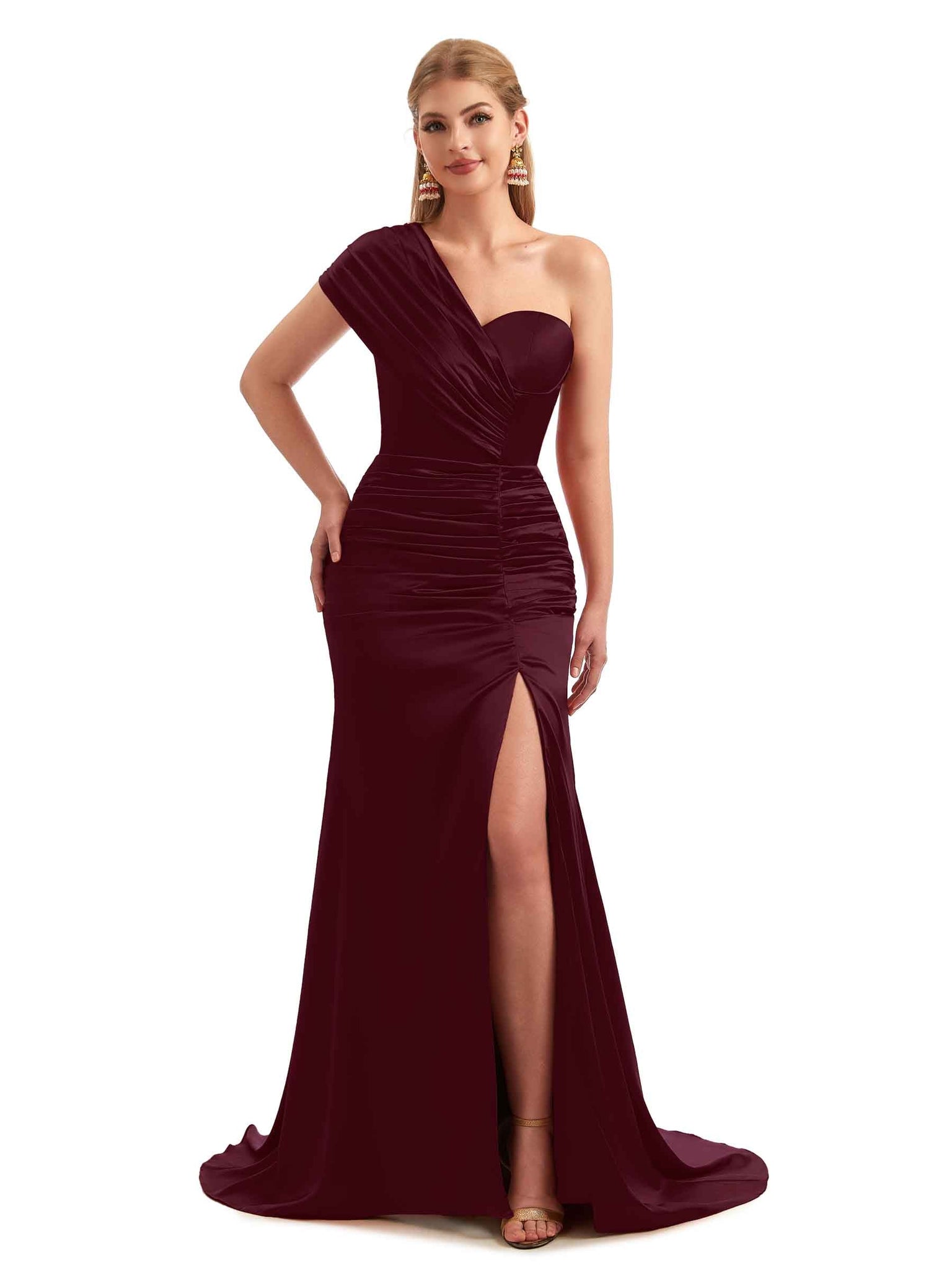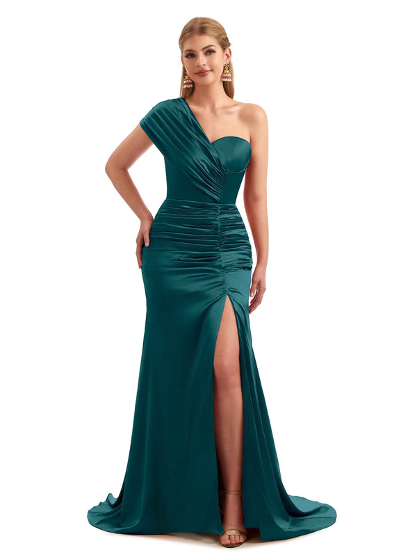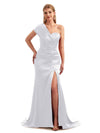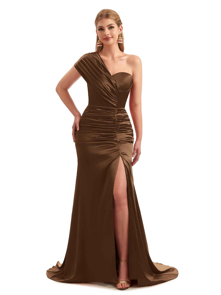 Elegant Champagne Long One-Shoulder Satin Bridesmaid Dresses - ChicSew – ChicSew