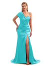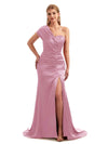 Elegant Champagne Long One-Shoulder Satin Bridesmaid Dresses