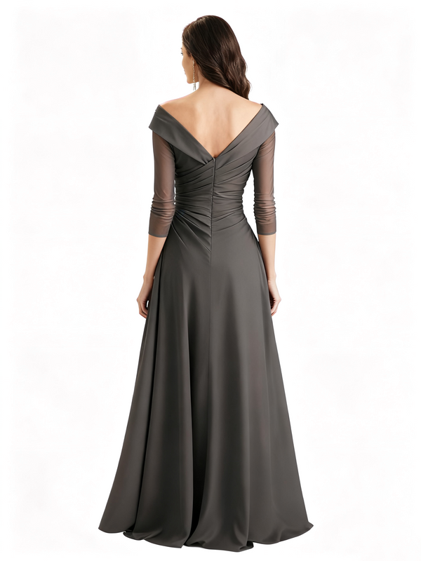 Elegant Chiffon A-Line V-Neck 3/4 Sleeves Floor Length Mother Of The Bride Dresses - ChicSew – ChicSew