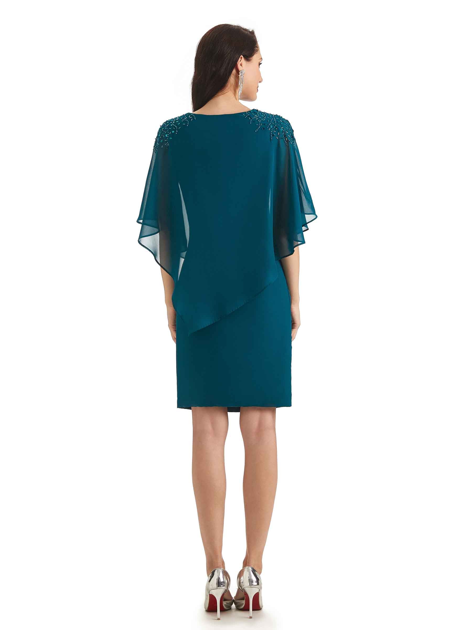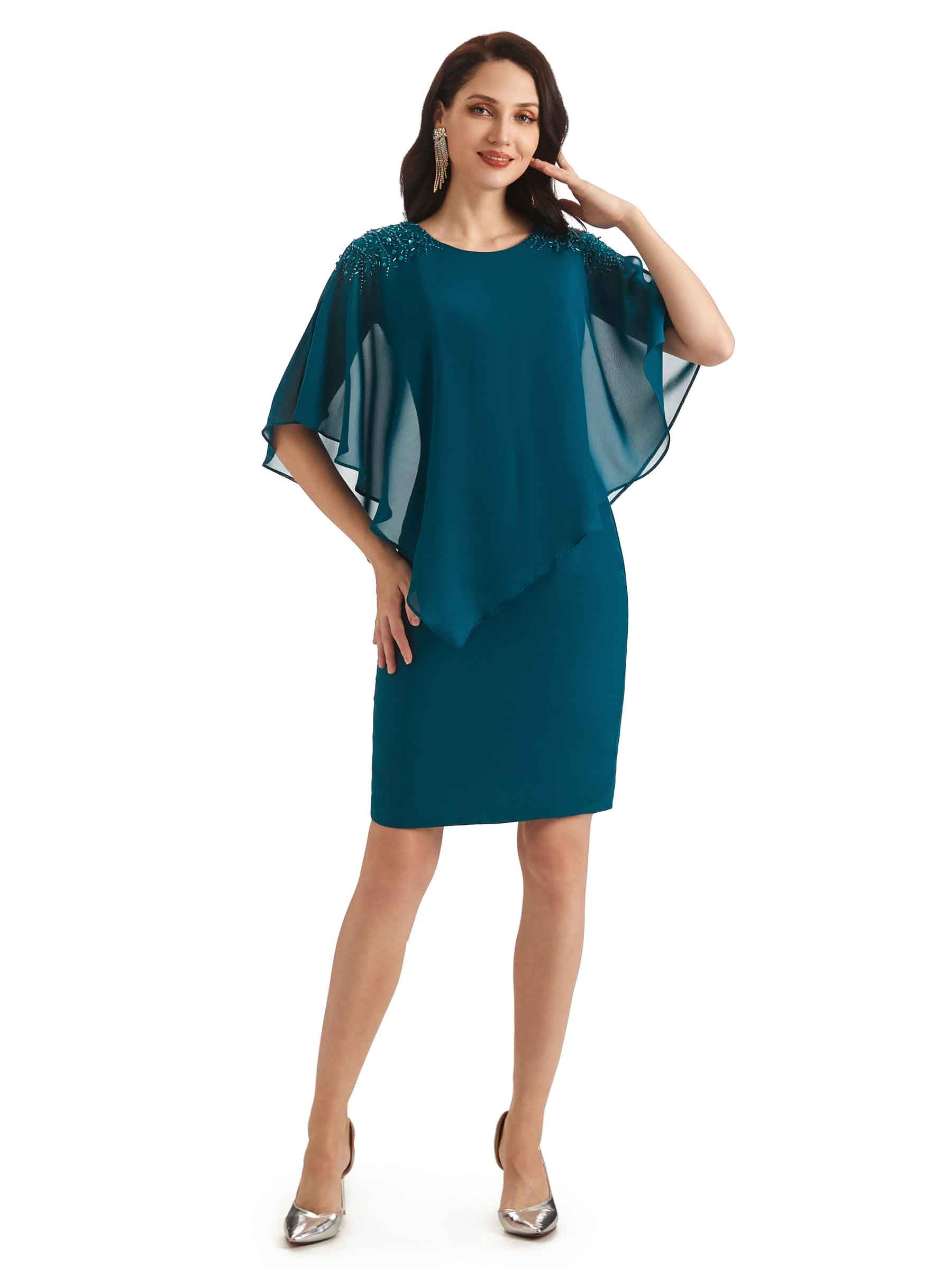 Elegant Chiffon Half Sleeves Knee Length Short Mother of The Bride Dresses - ChicSew – ChicSew