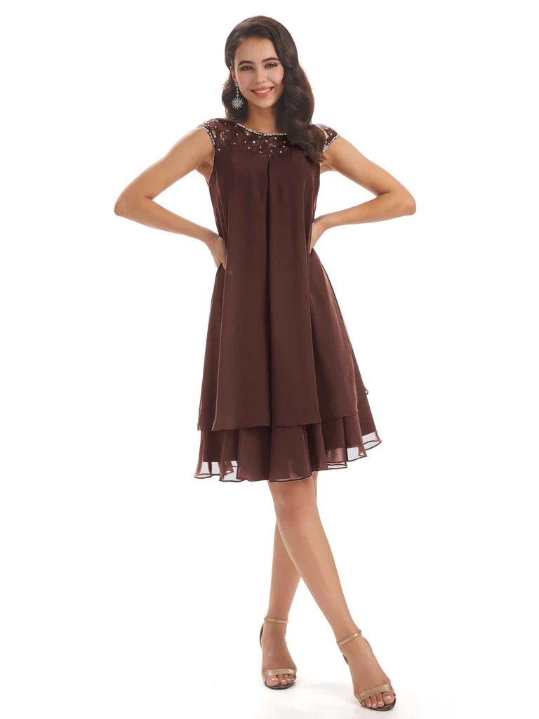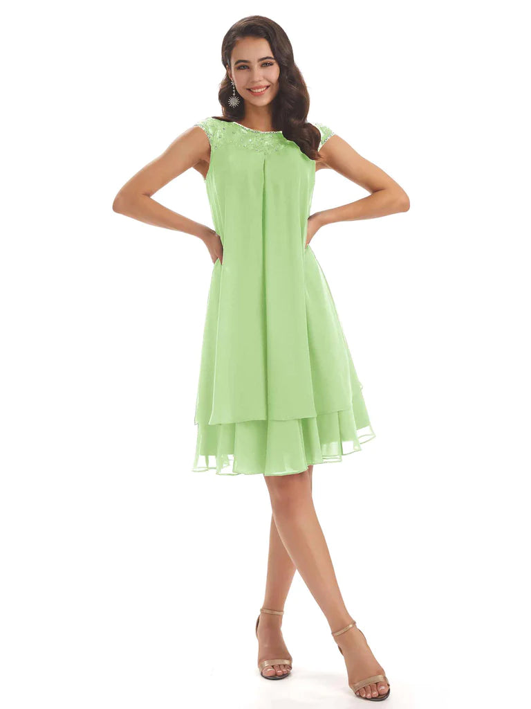 Elegant Chiffon Lace Cap Sleeve Knee Length Mother Of The Bride Dresses In Stock - ChicSew – ChicSew