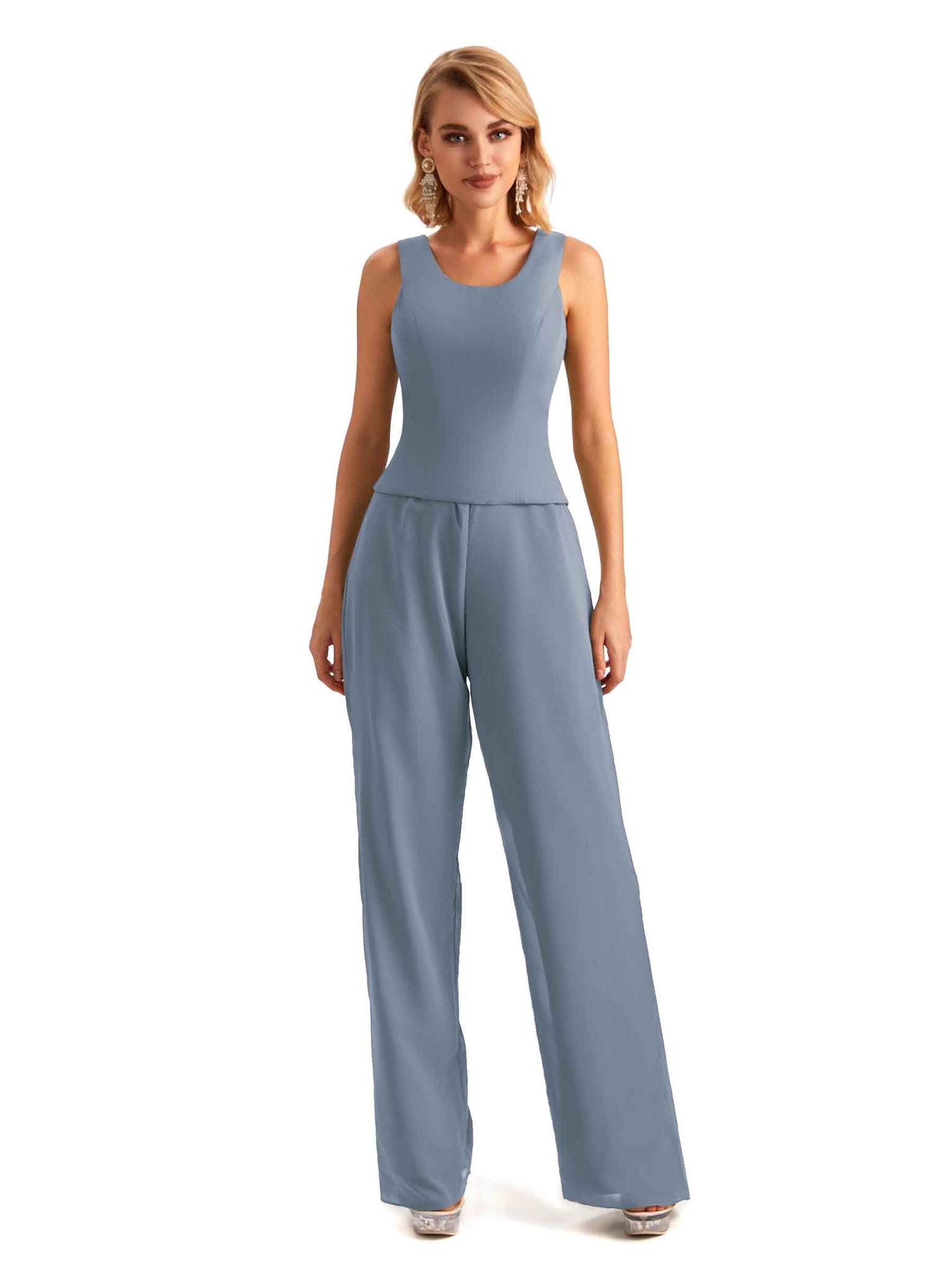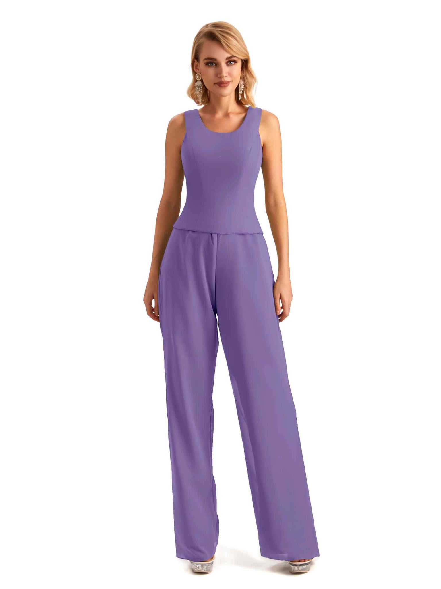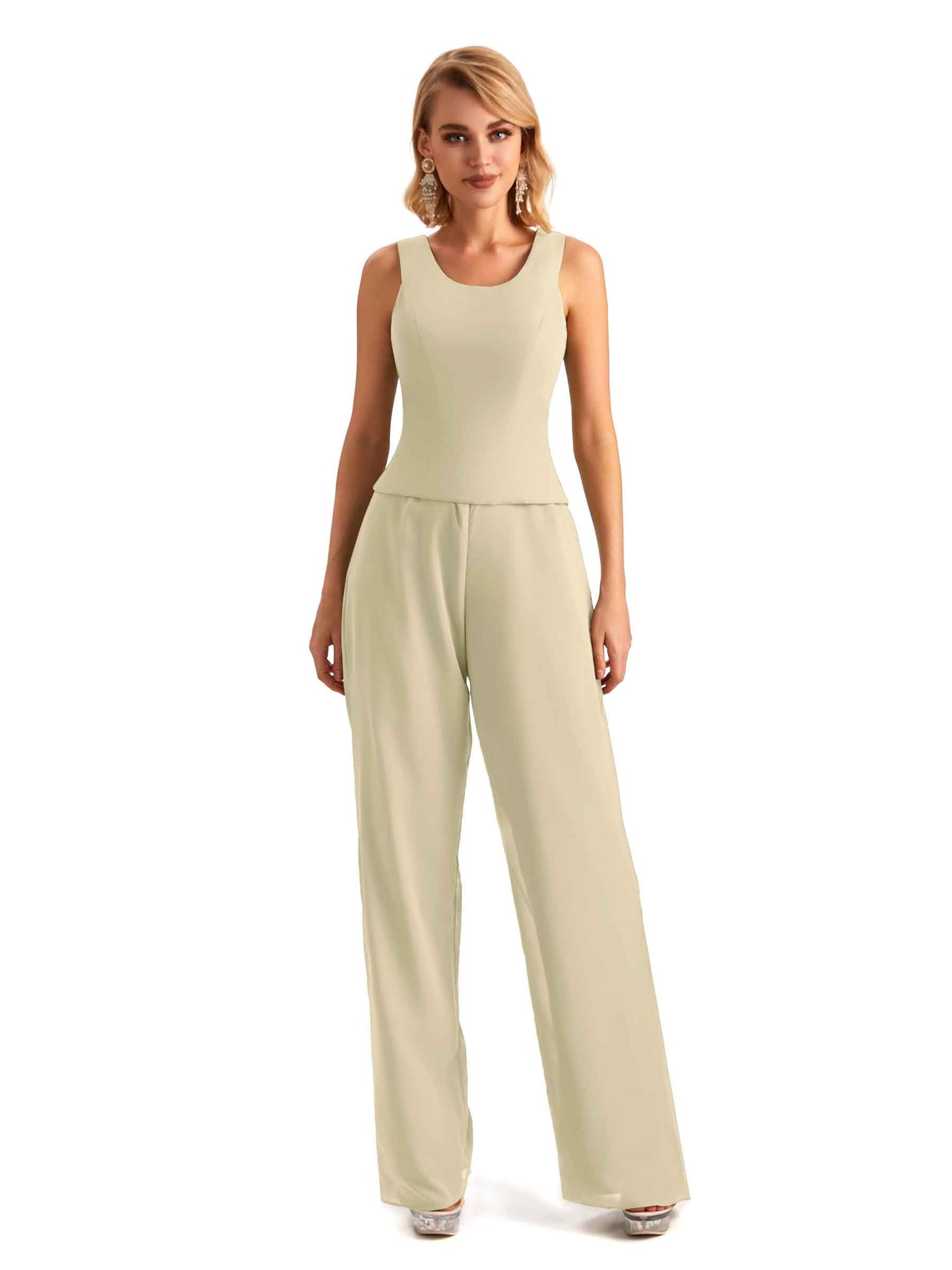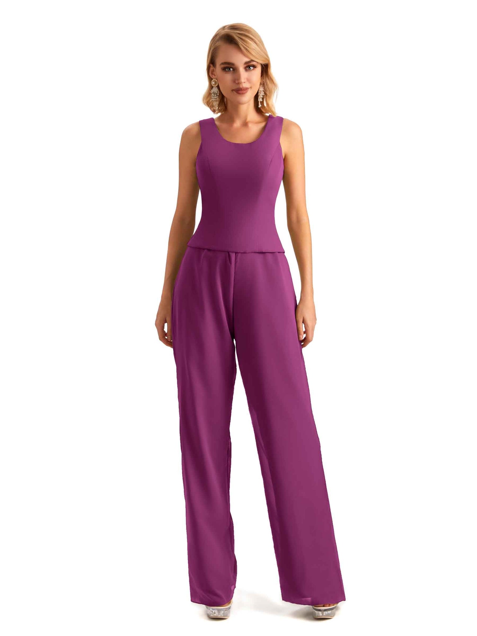 Elegant Chiffon Scoop Sleeveless Pant Suit Mother Of The Bride Online - ChicSew – ChicSew