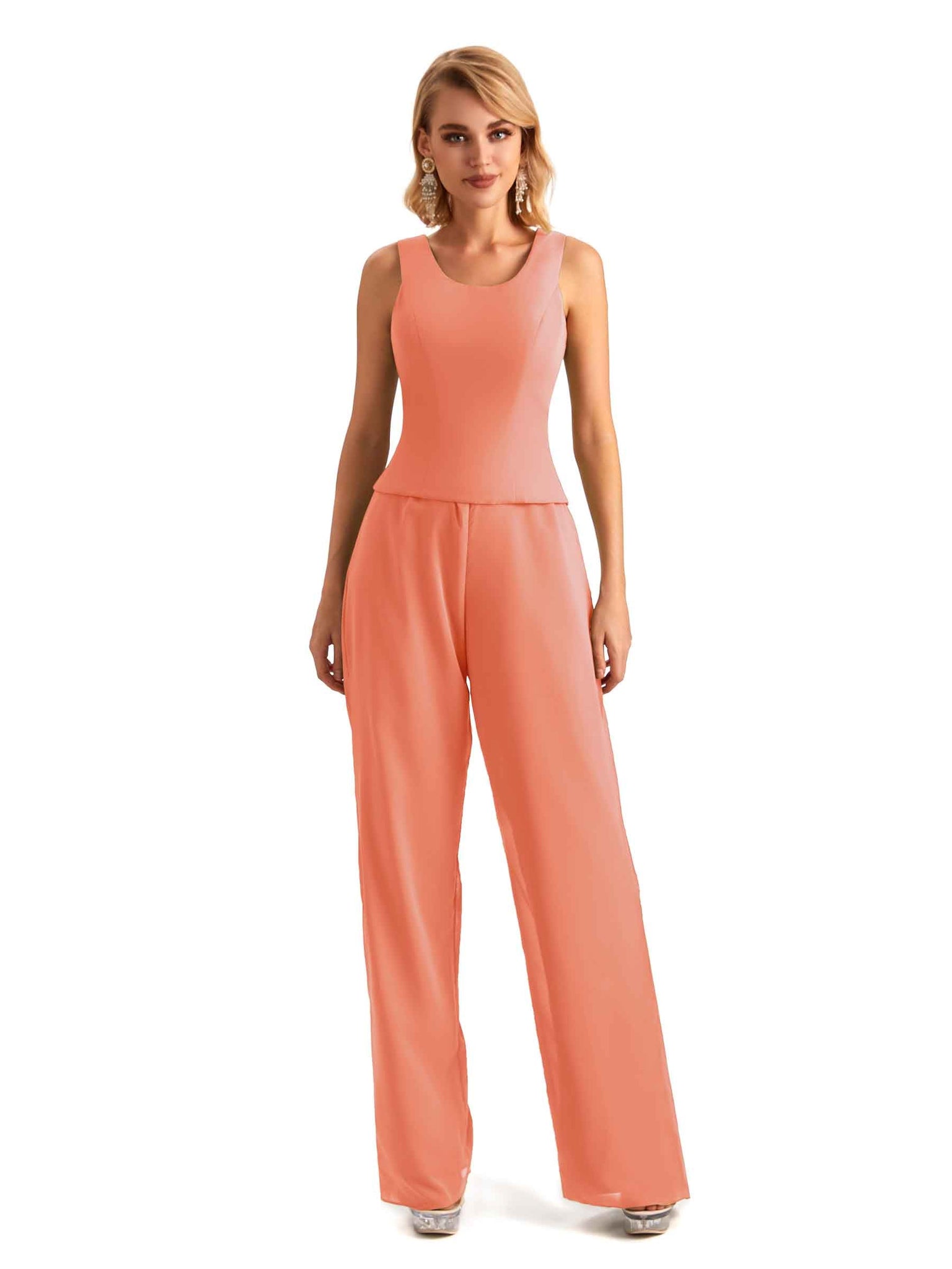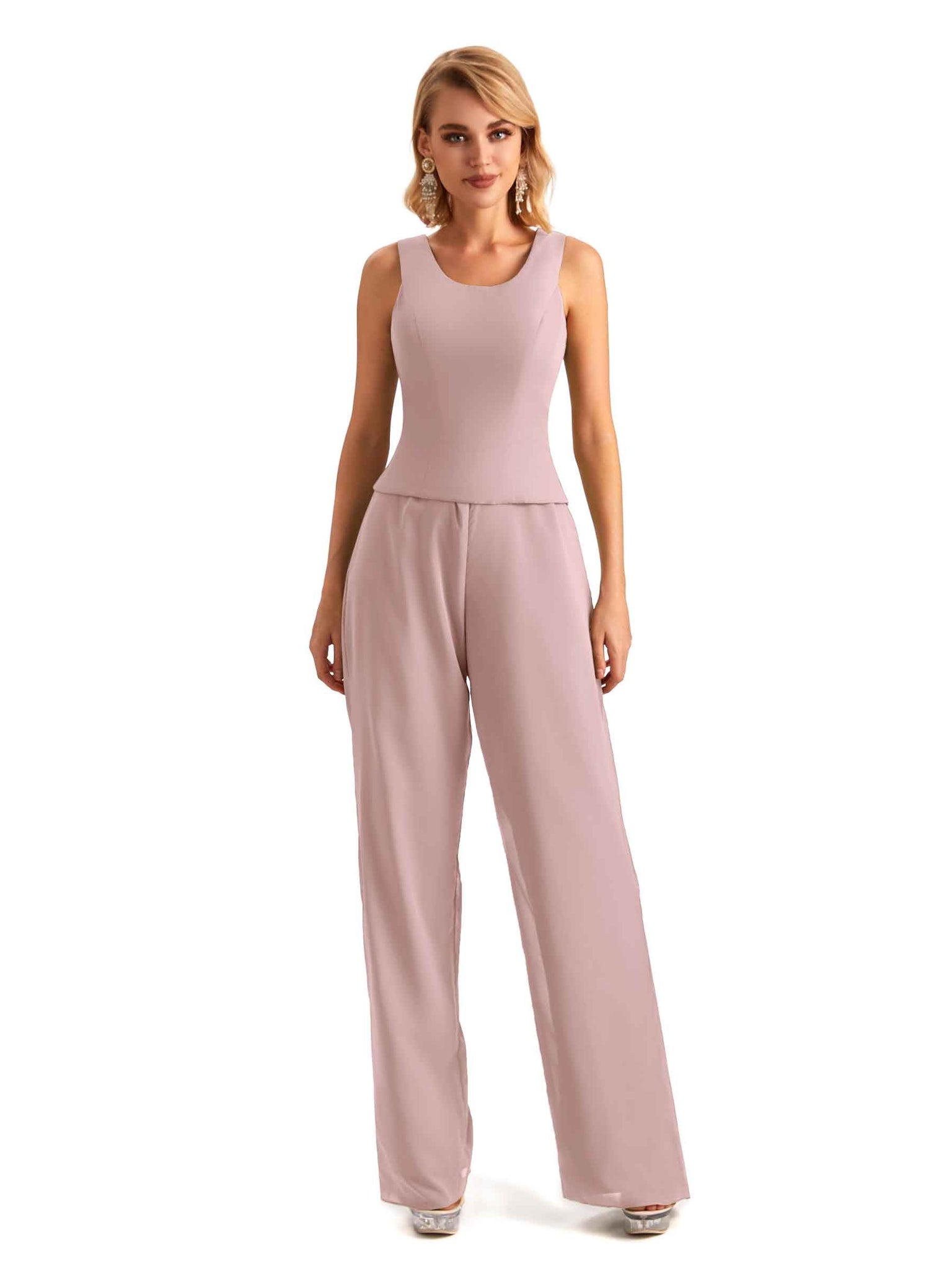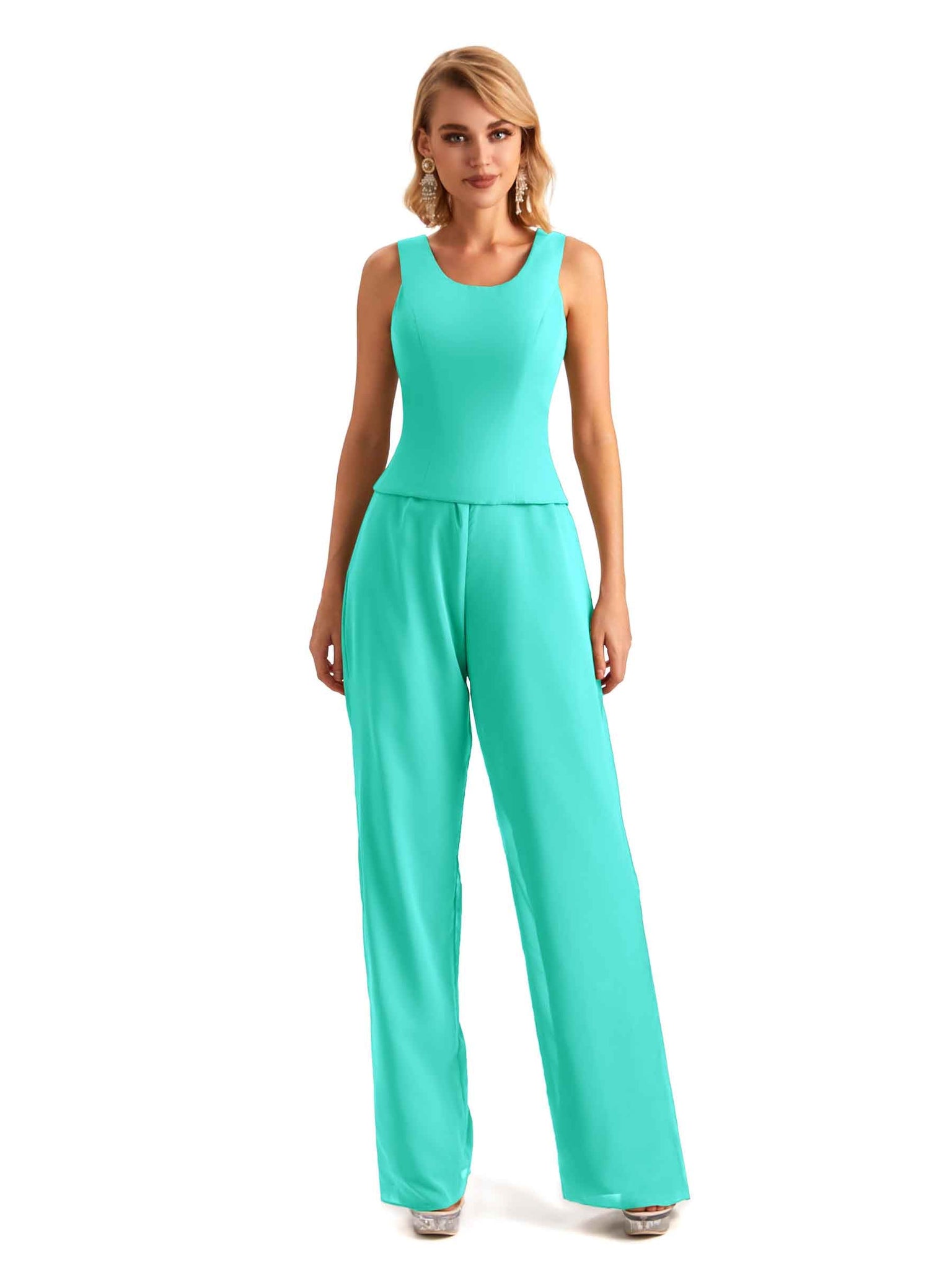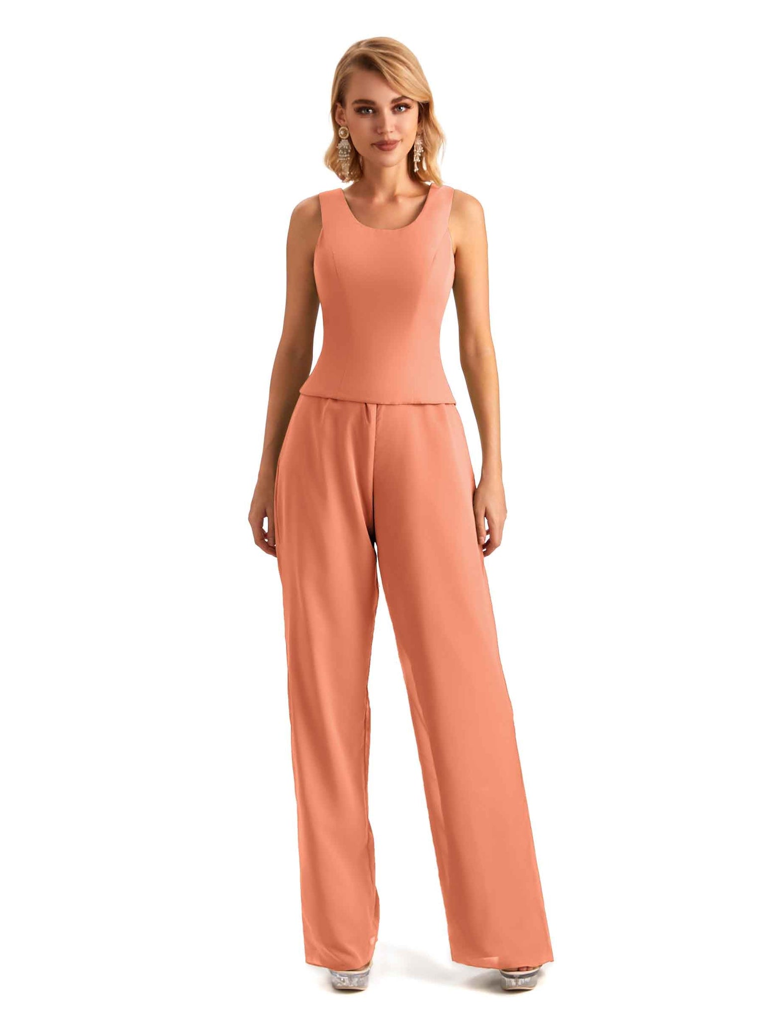 Elegant Chiffon Scoop Sleeveless Pant Suit Mother Of The Bride Online - ChicSew – ChicSew